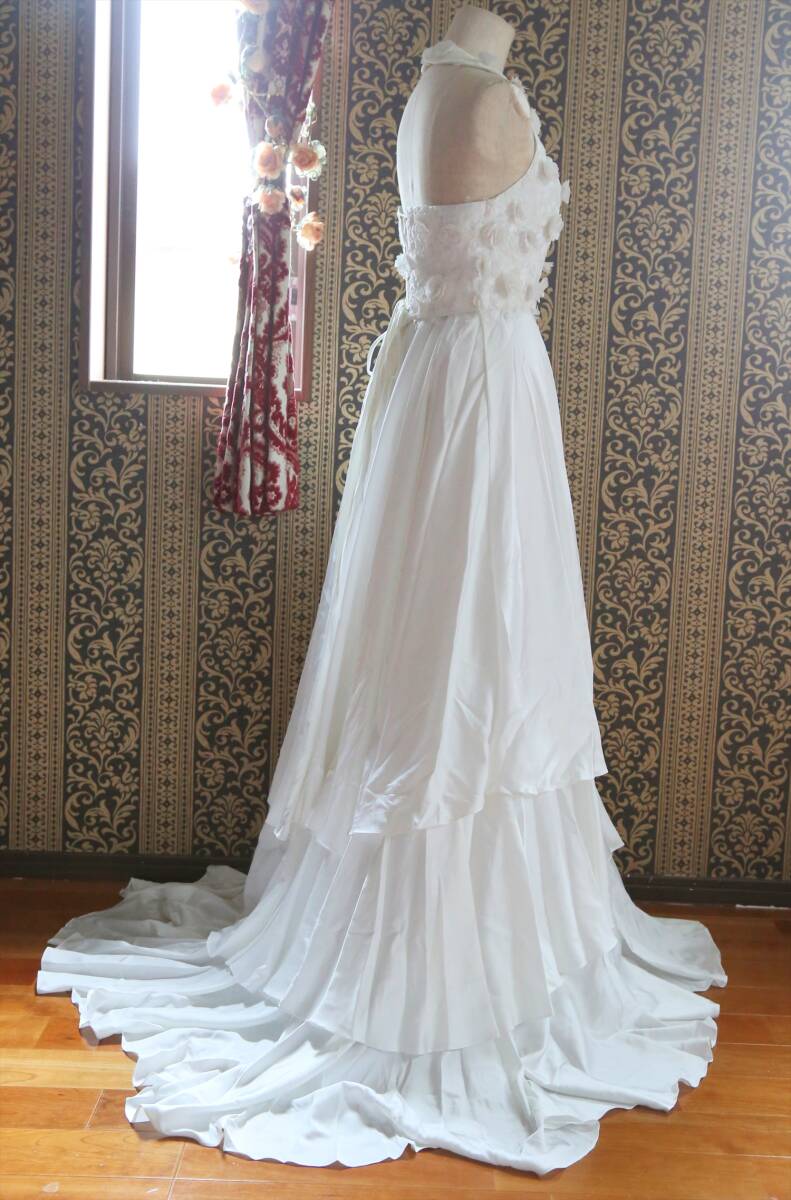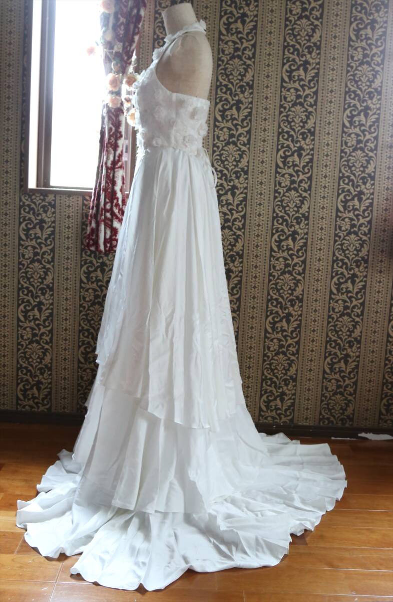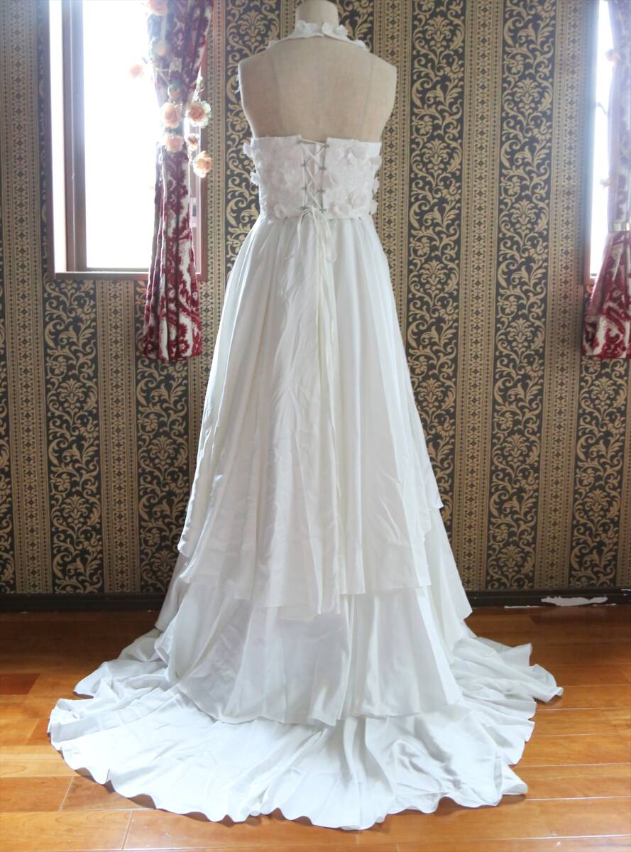 ホルターネックのスレンダーライン高級ウエディングドレス7号9号11号S~Lサイズ編上げ調節可能