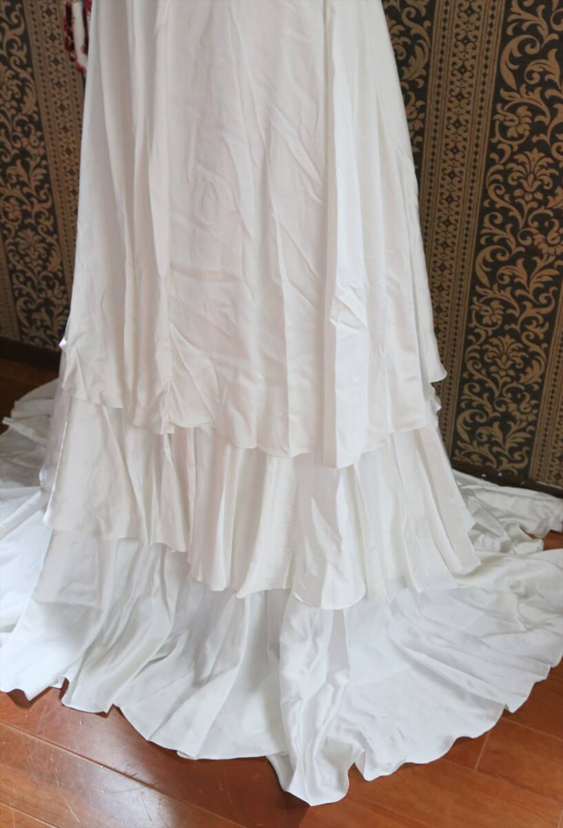 実寸はウエスト約5767cm、バスト約7888cm、前中心から裾までの丈約138cm、脇下から裾までの丈約142cm、後ろ丈約145cm、