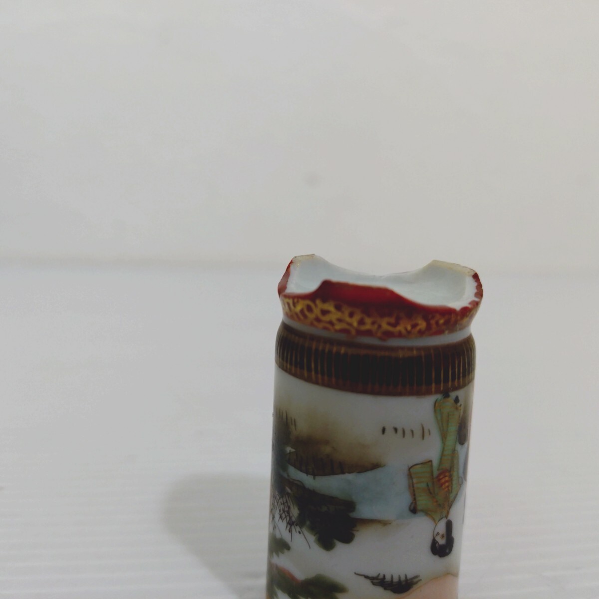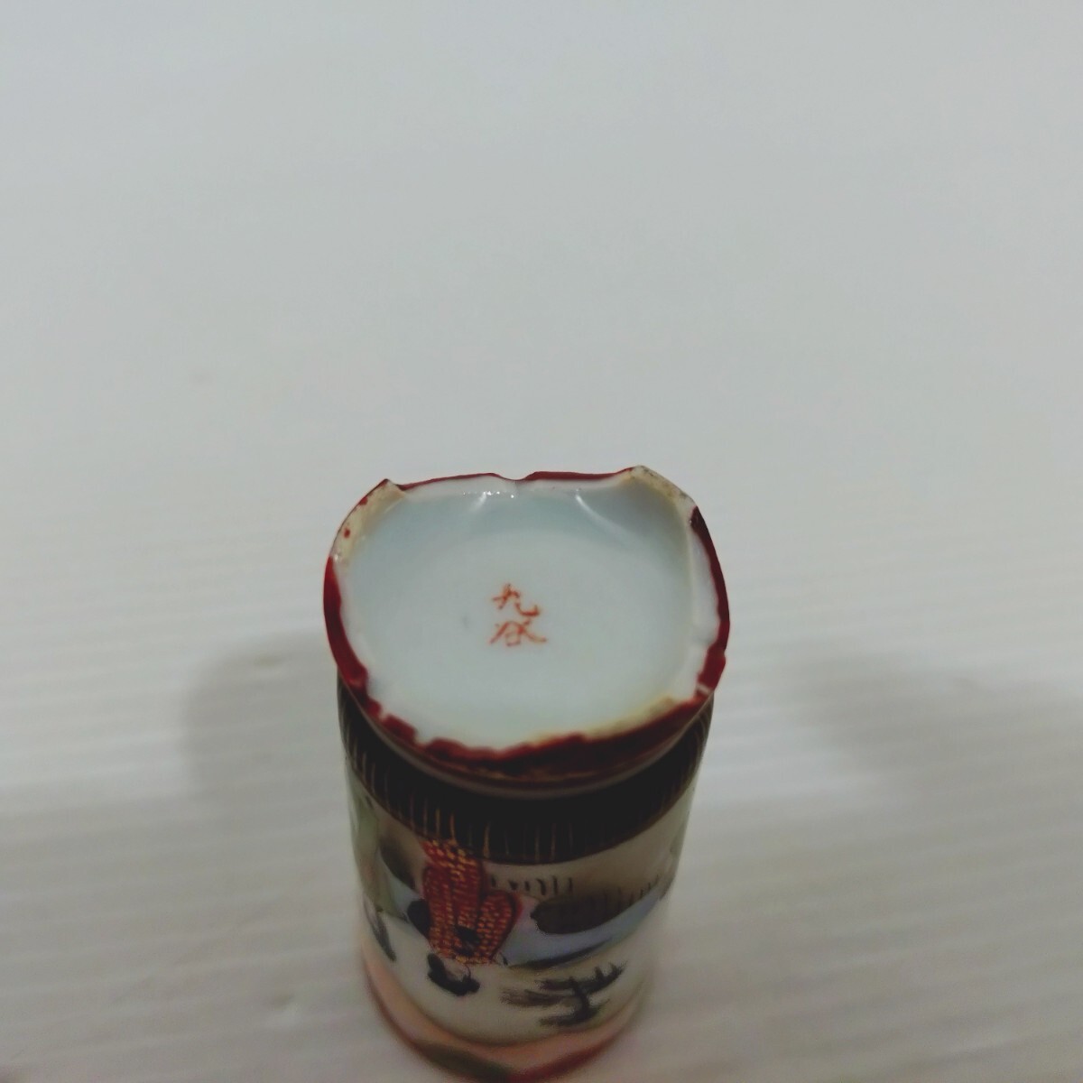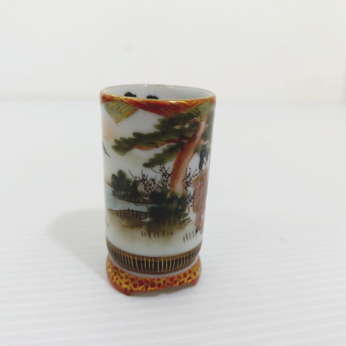 九谷焼 茶巾筒 茶巾入れ 毛筆色彩 手書き 骨董 明治 大正