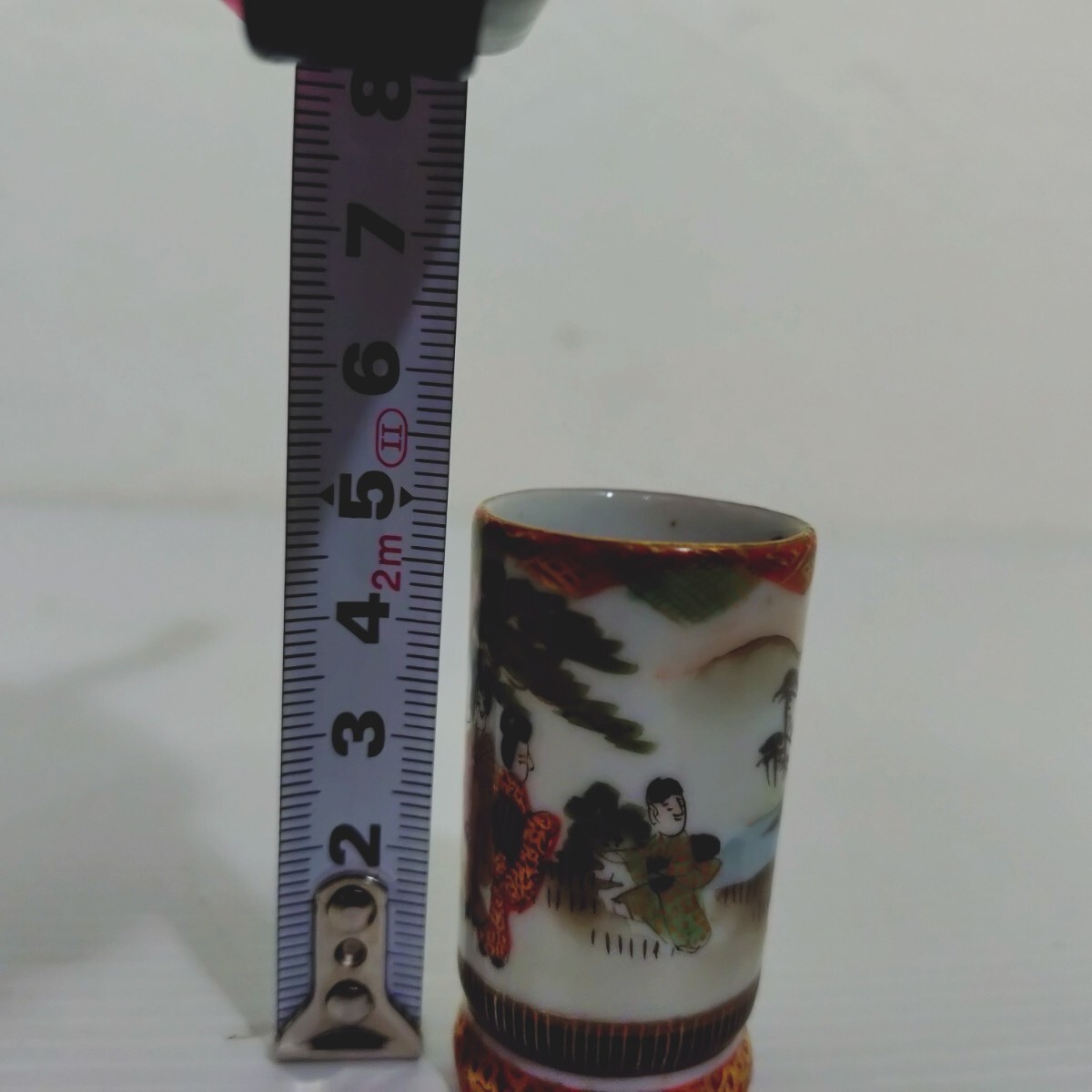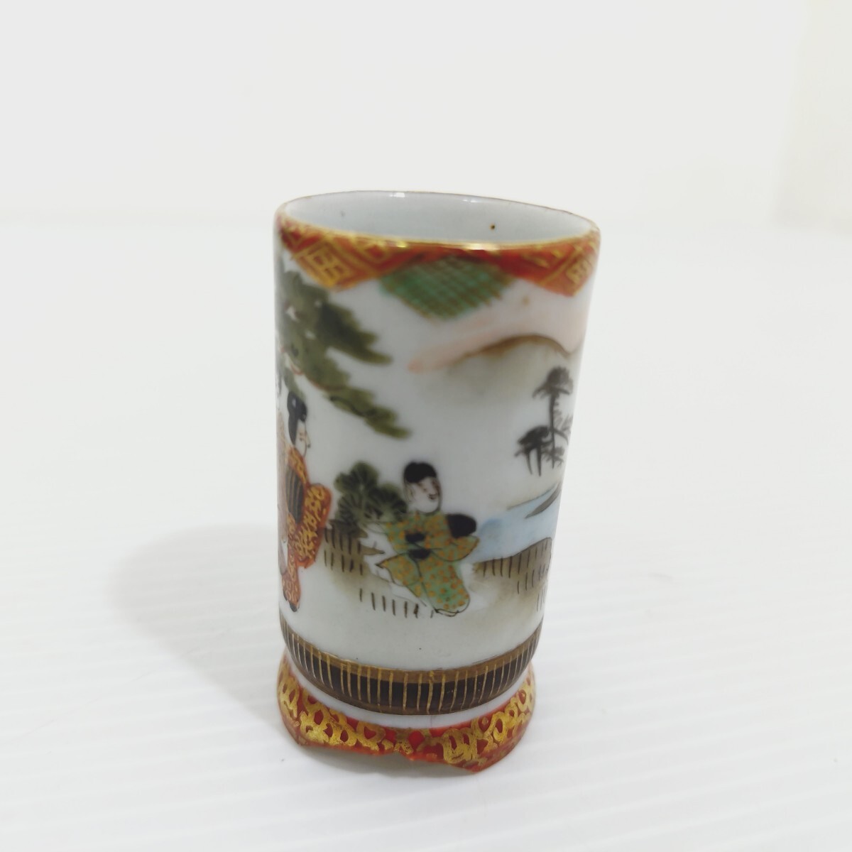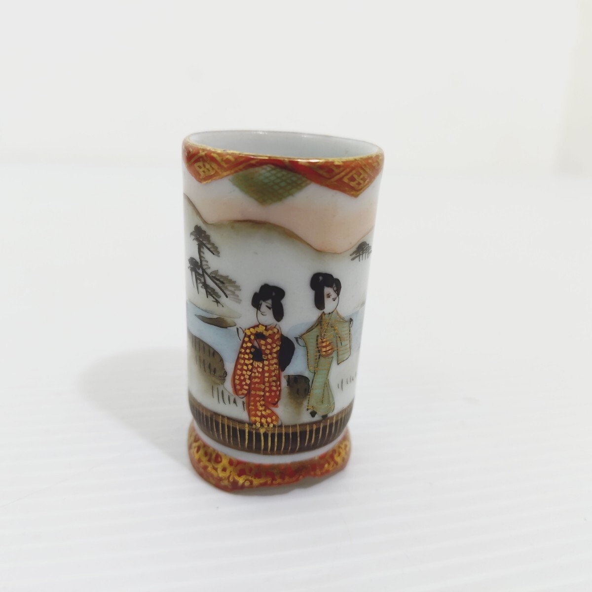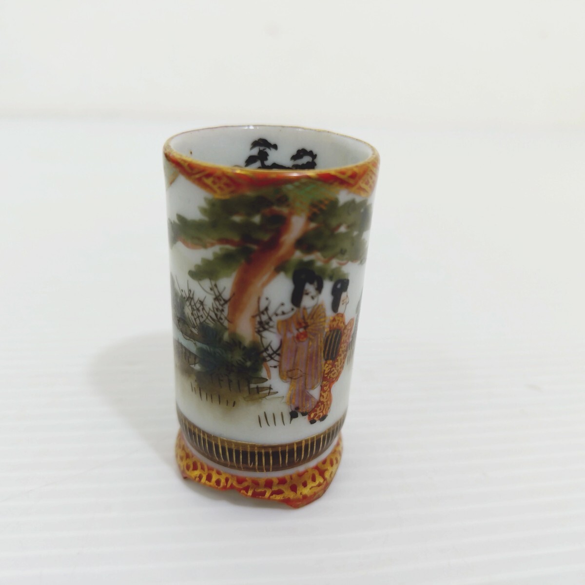 九谷焼 茶巾筒 茶巾入れ 毛筆色彩 手書き 骨董 明治 大正