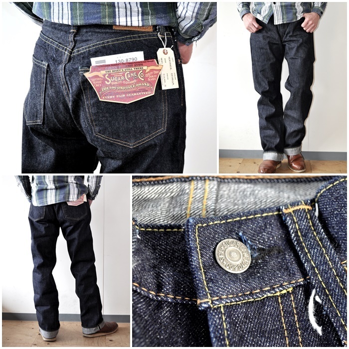 SUGAR CANEのXXタイプ。 1947年代のヴィンテージ・オリジナル・モデルであり、この時代らしいインディゴの深い藍色と色落ちしても濁り無く美しく残る青さを実現。