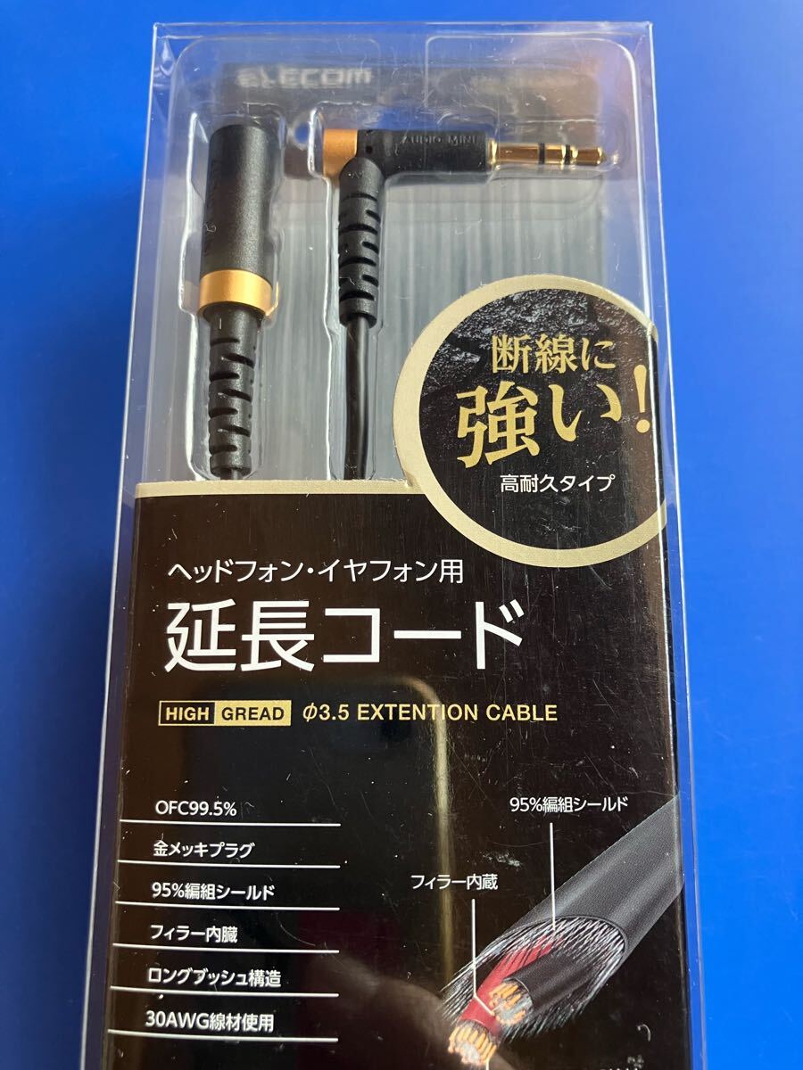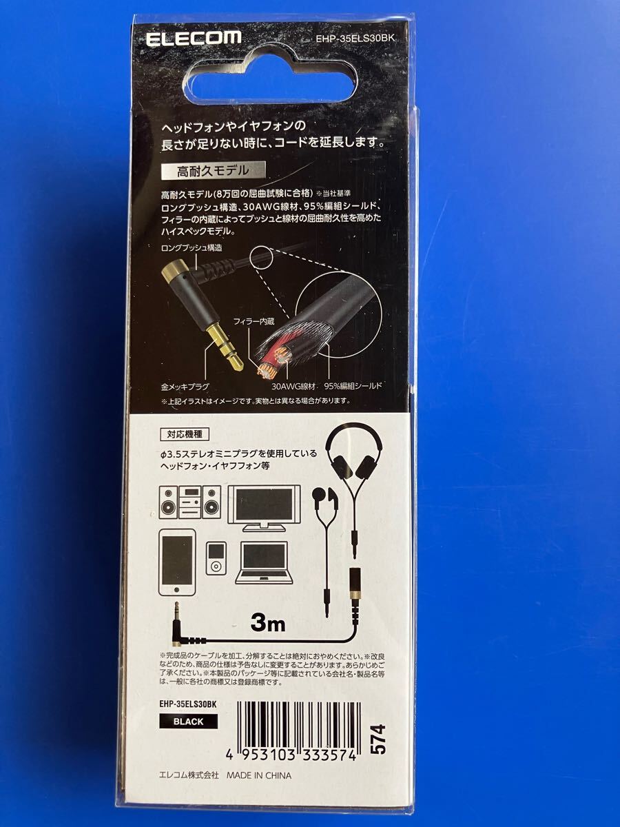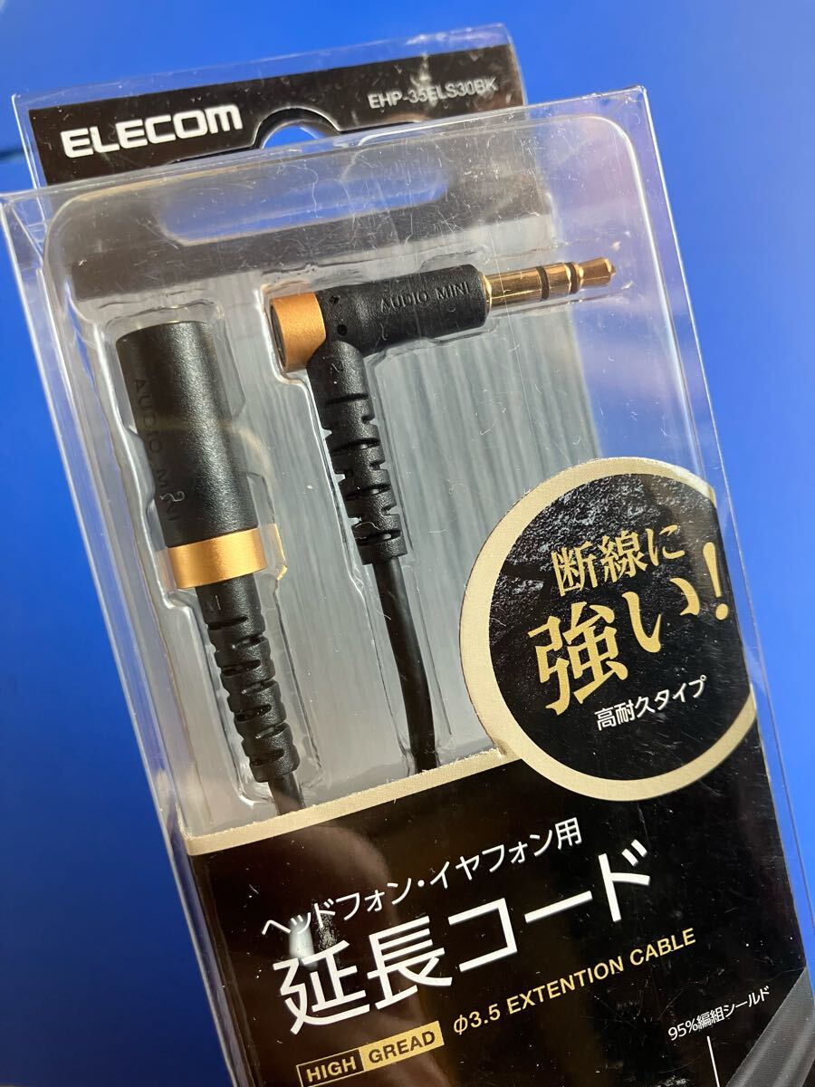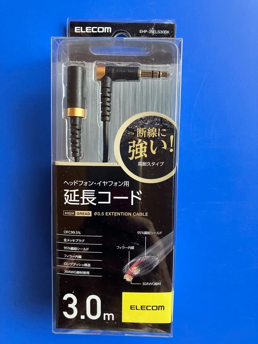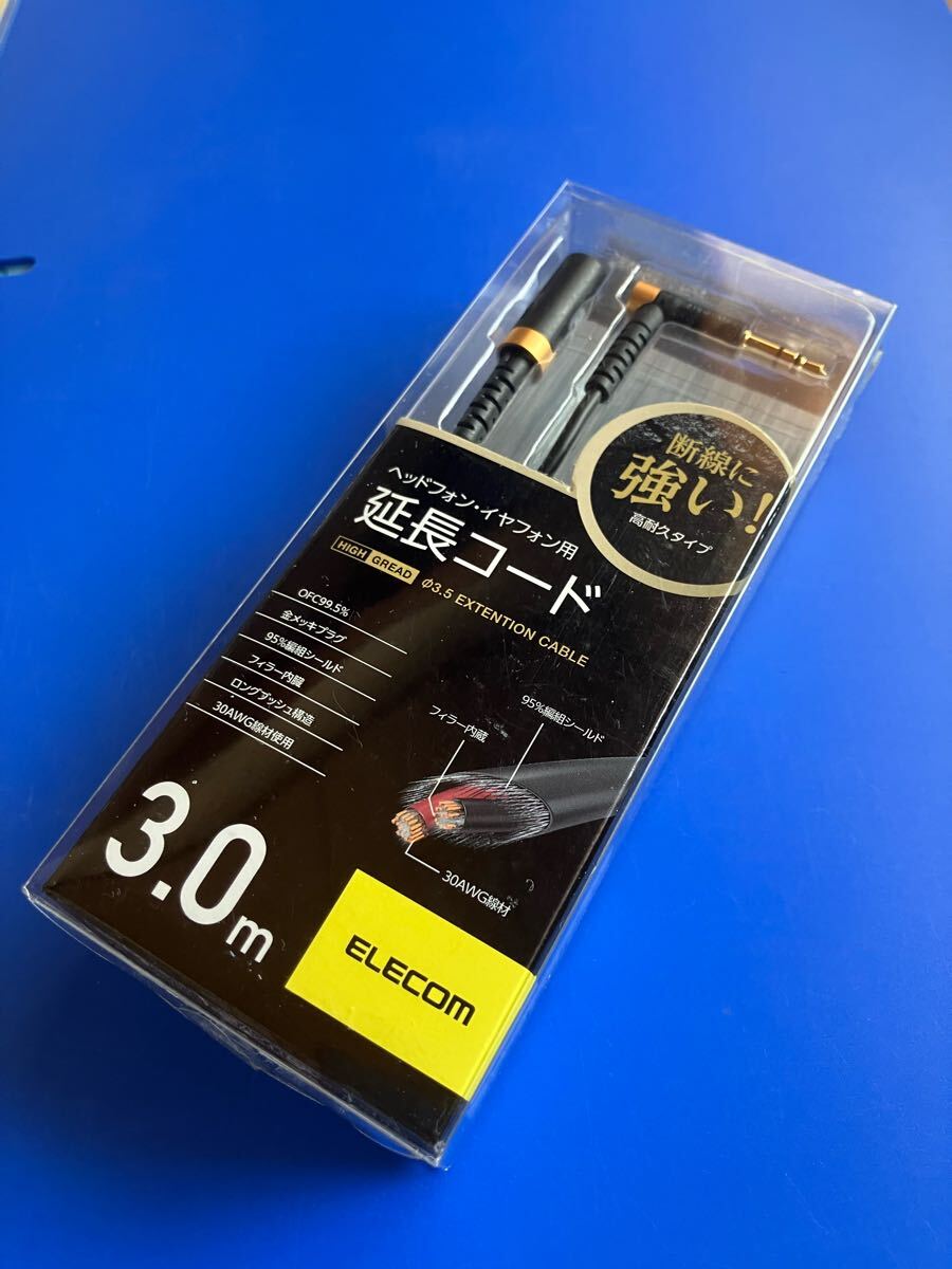 ★数日使用のみ!エレコム(ELECOM) ヘッドフォン・イヤフォン用 延長コード(3m/高耐久タイプ/黒)