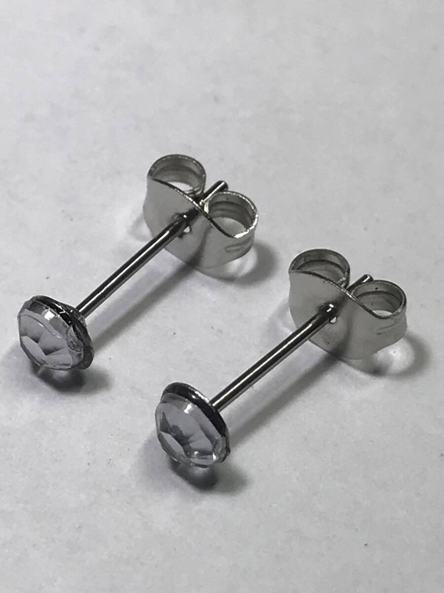 2個1セット 幅4mm ラインストーン スタッドピアス クリア 両耳用 ステンレス アクリル製 シンプル つけっぱなしOK 安い