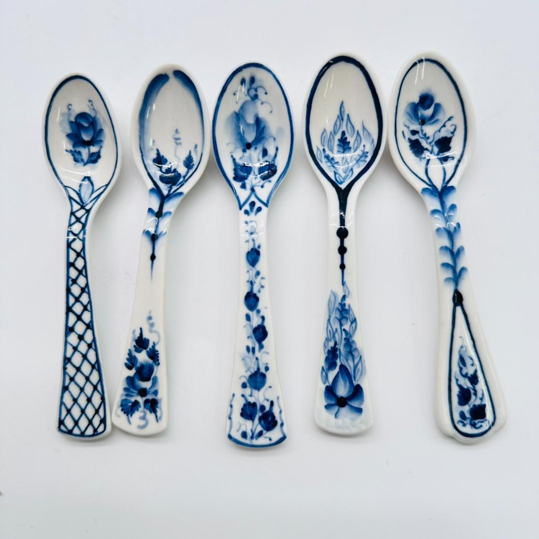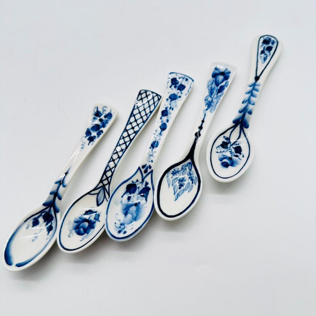 ロシア雑貨 グジェリ陶器 スプーン 5本セット ティー 花柄