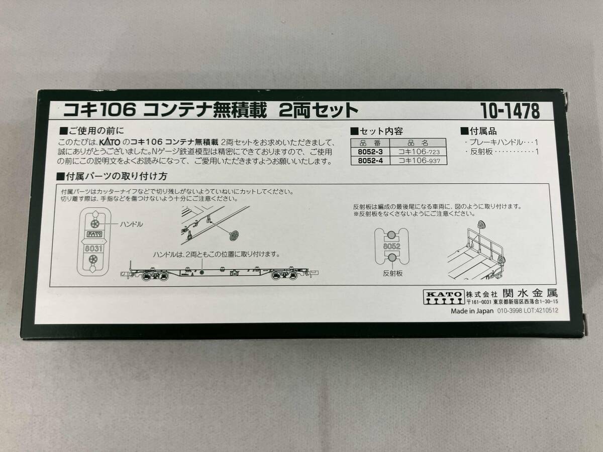 Nゲージ KATO 10-1478 コキ106 コンテナ無積載 2両セット カトー