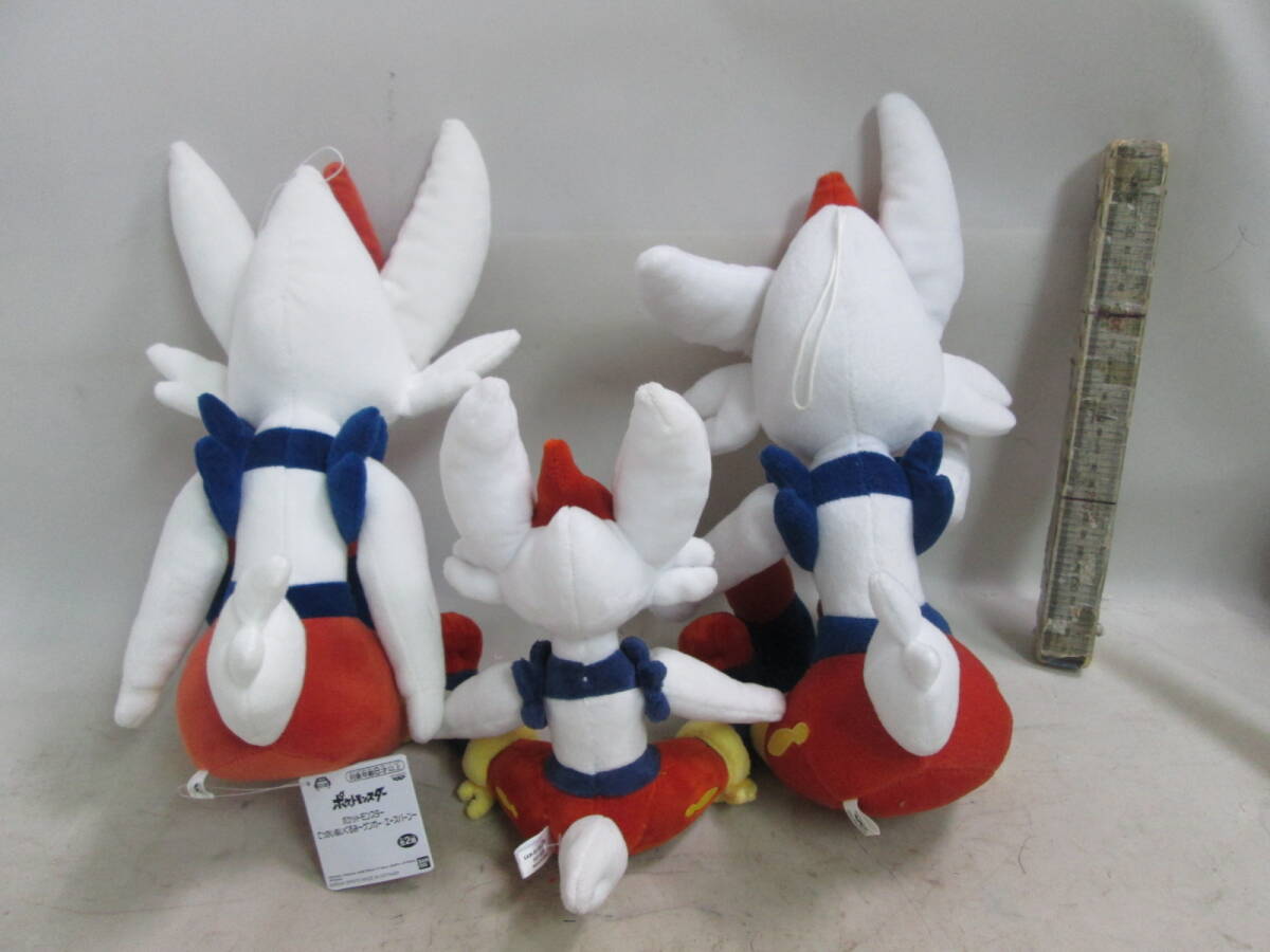 ポケモン  エースバーン ぬいぐるみ小(三英貿易)+でっかいぬいぐるみ 3体で 座って45cm 送料が説明欄に記入