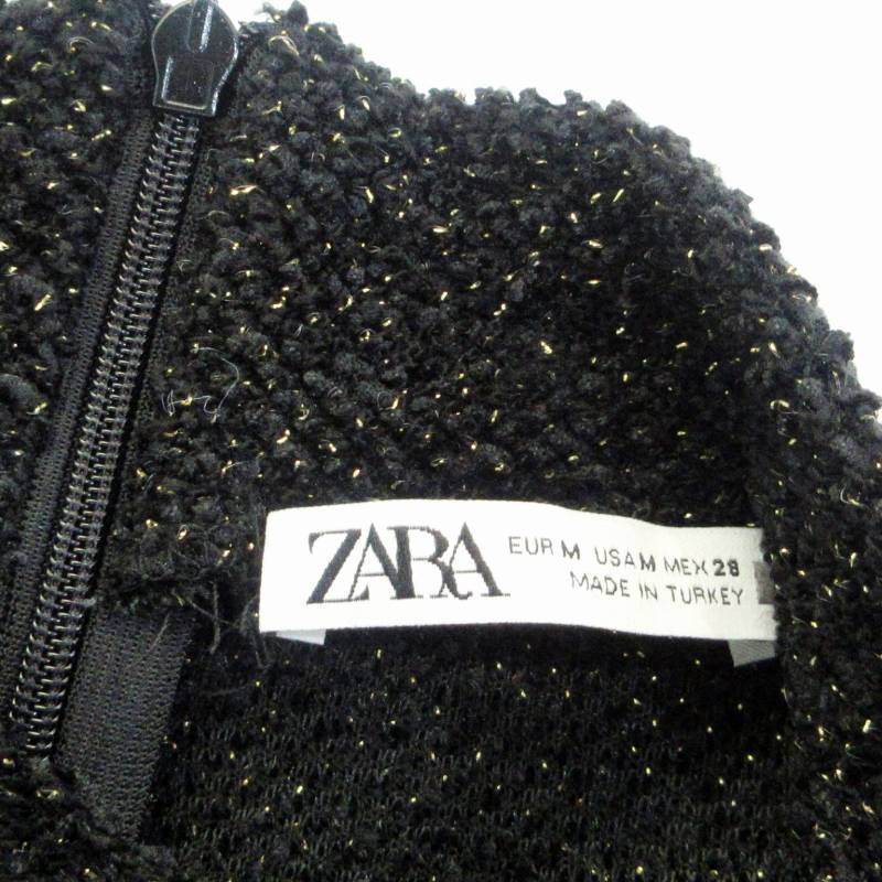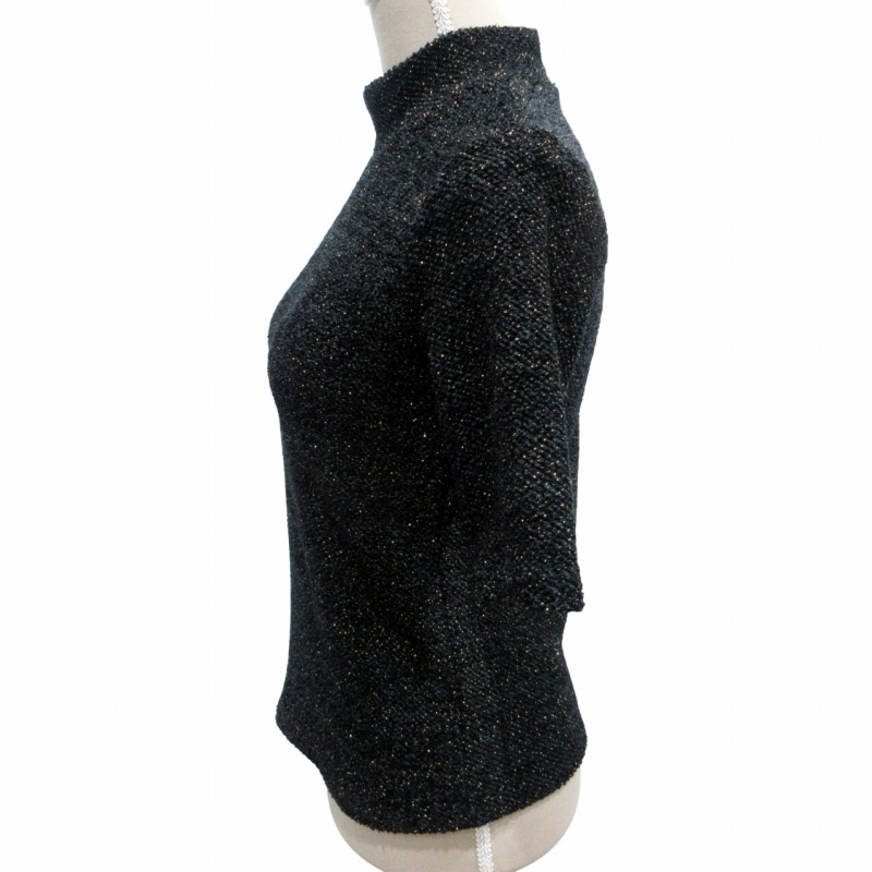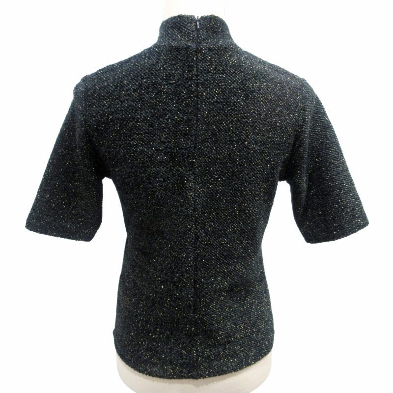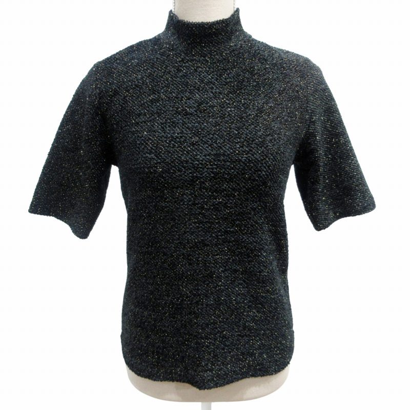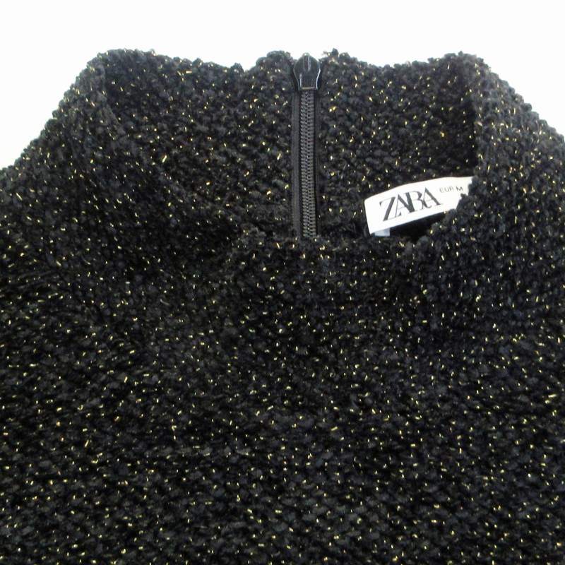 ザラ ZARA 美品 ニット セーター ラメ グリッター ハイネック 半袖 ジャガードトップ M 黒 ブラック 0619 レディース