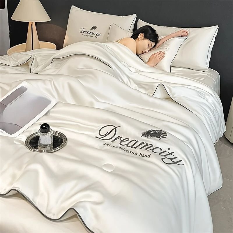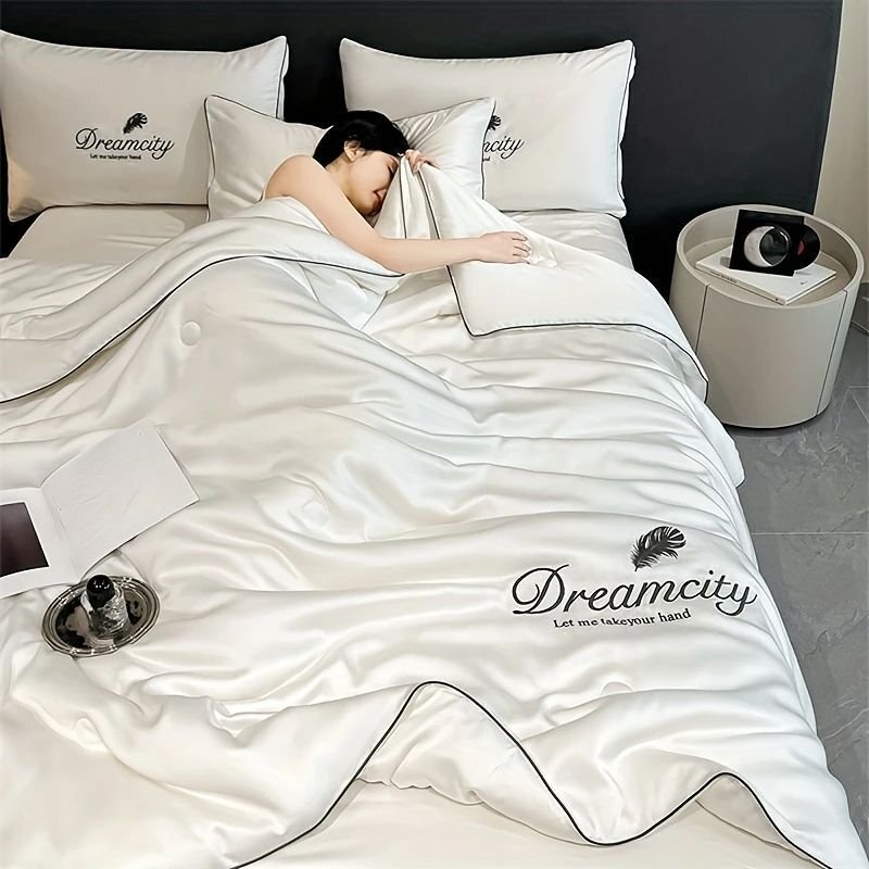 夏の涼しい薄手の高級キルト 涼しげな刺繍の夏用キルト 枕カバーなしの単品 自宅の寝室や寮に最適 ホワイト 150cm*200cm
