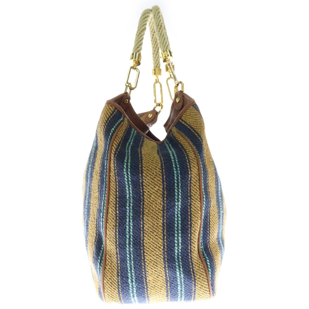 品名マルチストライプ ロゴモチーフ レザー切替 トートバッグ ブラウン/ネイビー/ブルー レディース