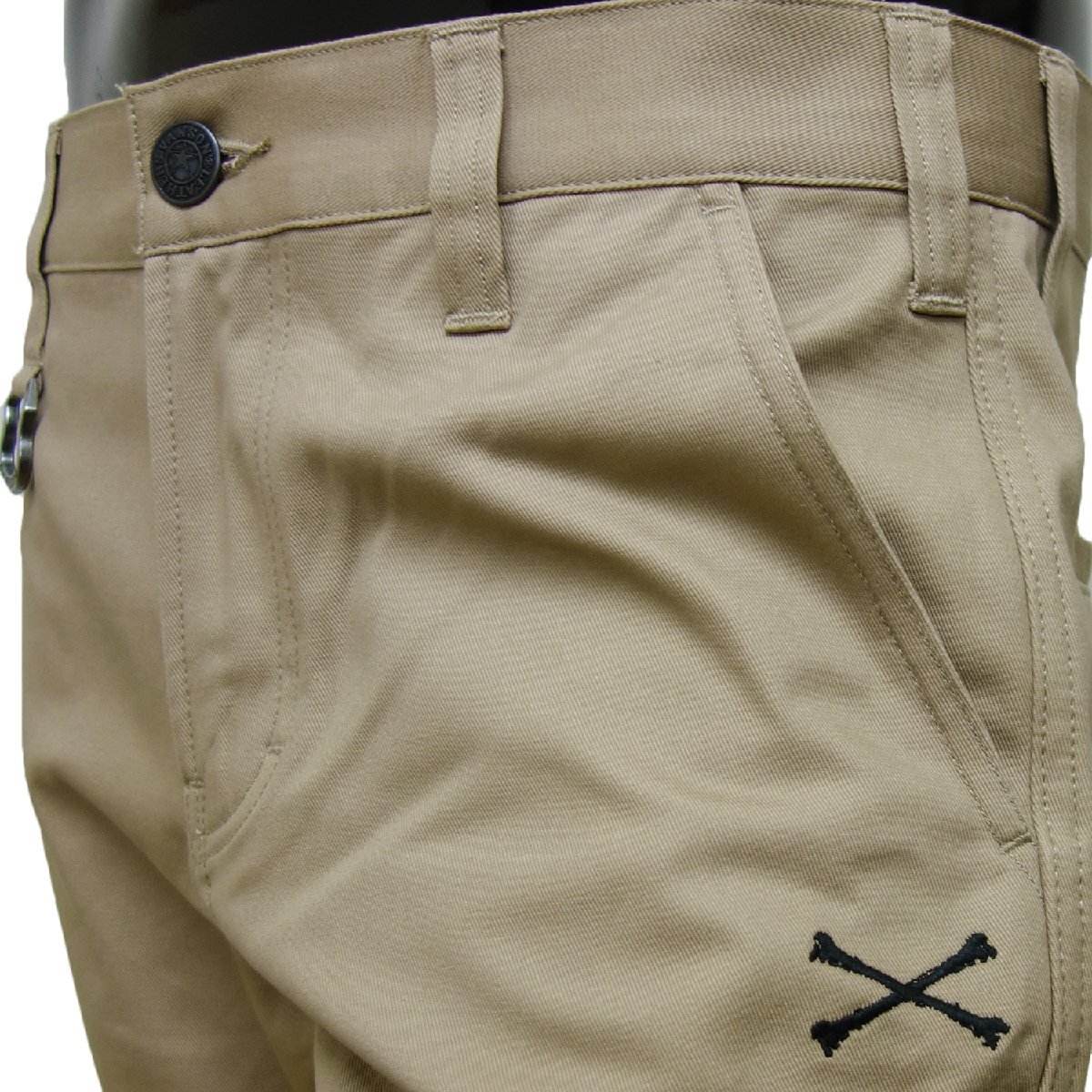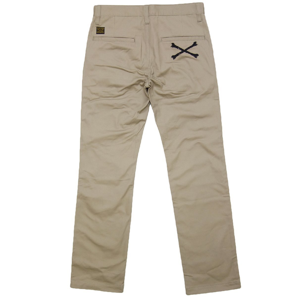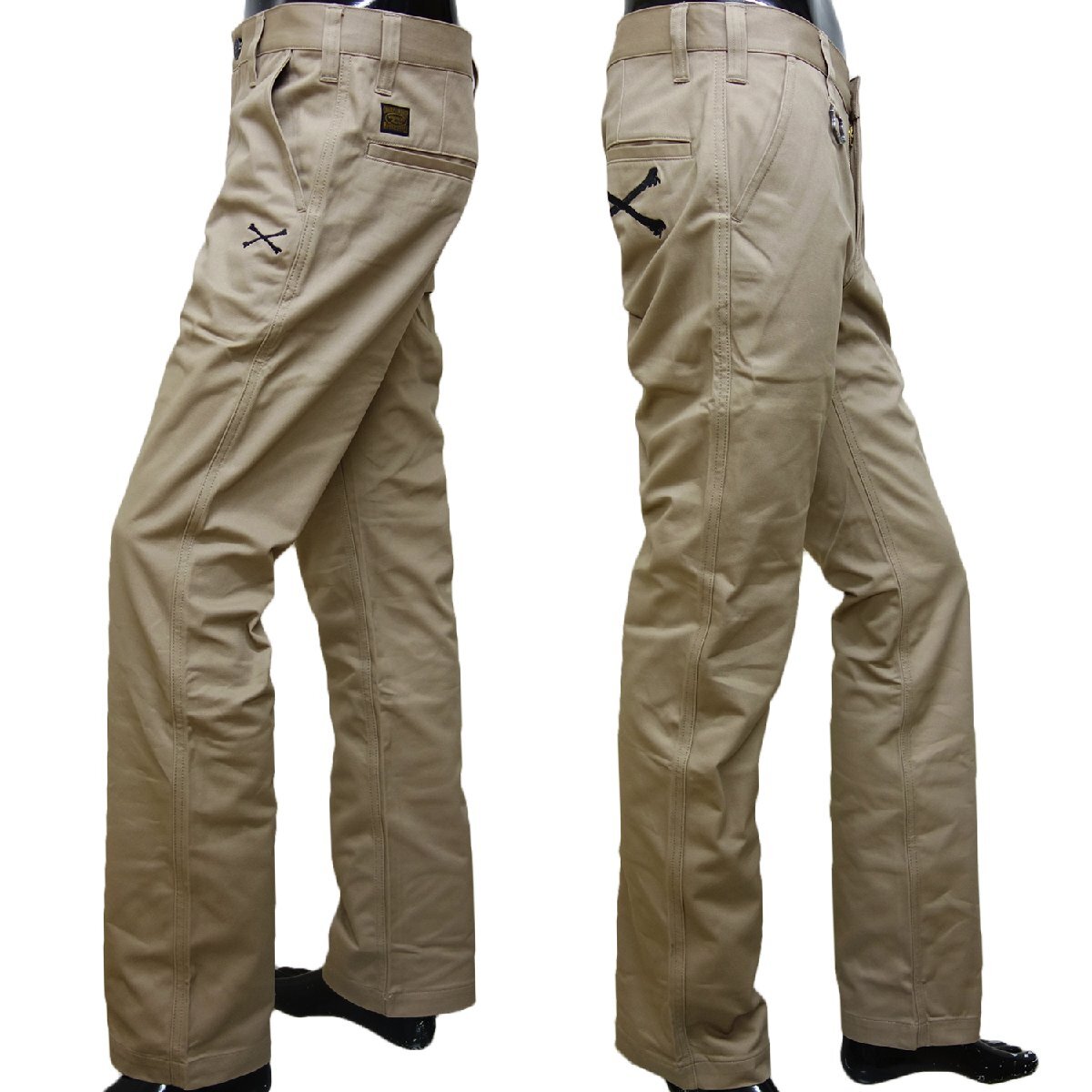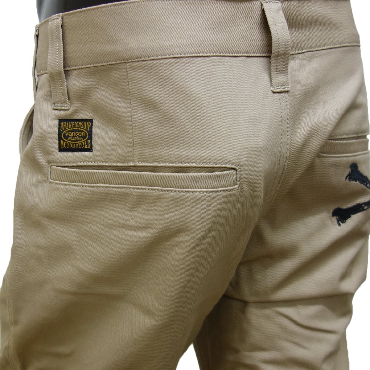 バンソンのチノパンツ、2024年春モデルのボトムス・新作です。アートはクロスボーンのみのシンプルなこなしのため、どんなスタイルでもよく合いそうです。またオリジナルボタンやオリジナルDカンなど細部までこだわりの感じられるオススメのズボンです!様々なコーディネイトに取り入れやすく、色違いで欲しくなってしまう万能パンツです♪
