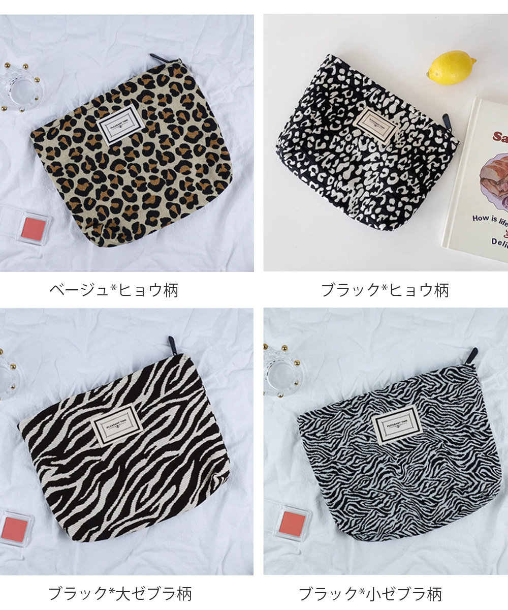 カラー:ベージュ*ヒョウ柄/ブラック*ヒョウ柄/ブラック*大ゼブラ柄/ブラック*小ゼブラ柄
