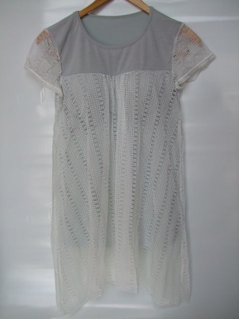 シャツに透け感のあるレースのチュニックがついたようなデザインです。