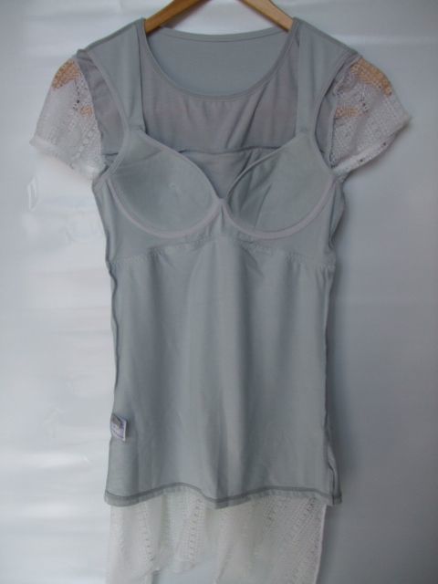 新品7-601■L■フルカップ付ブラ付レースチュニック付きシャツ*白