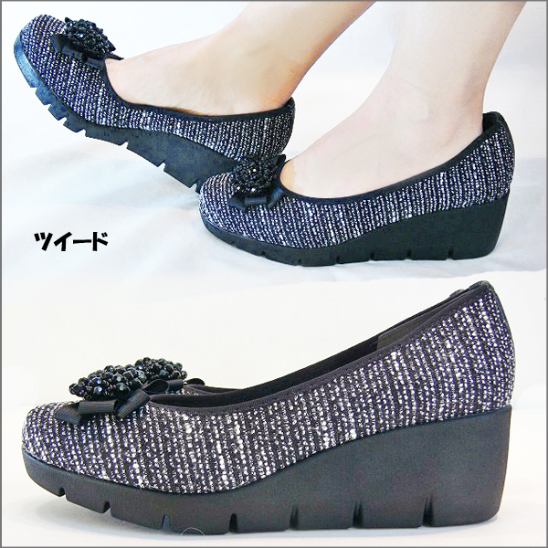 39lk 送料無料 ファーストコンタクト パンプス ビジュー 日本製 痛くない 母の日 ウェッジパンプス コンフォートシューズ 走れるパンプス