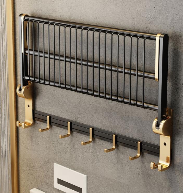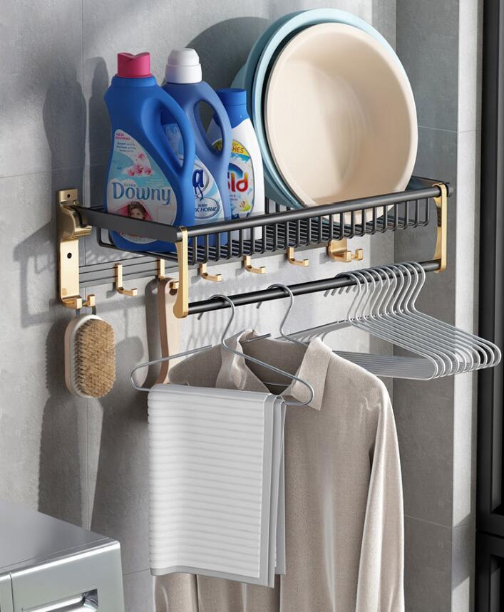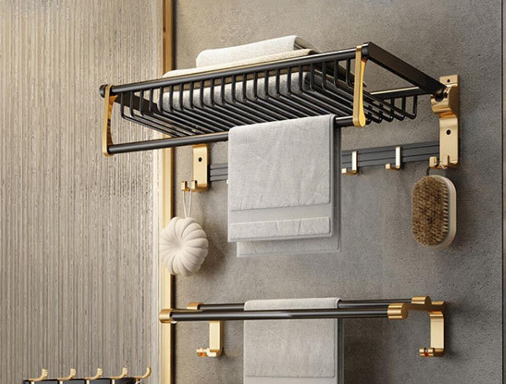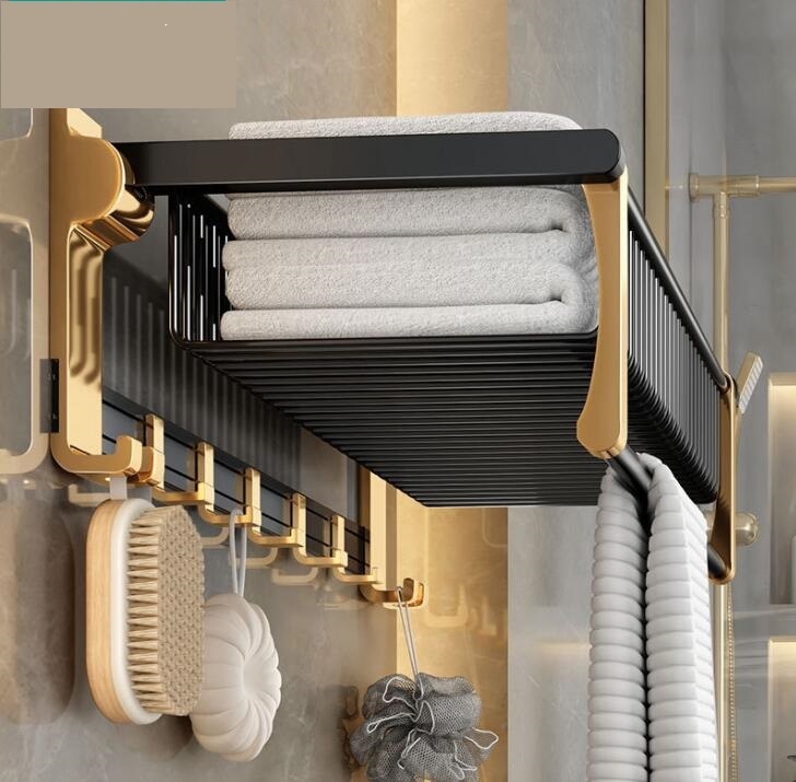 新入荷 クリエイティビティ折りたたみ式タオル掛けタオルバー&フック付きバスルーム棚壁掛け棚多機能黒60cm