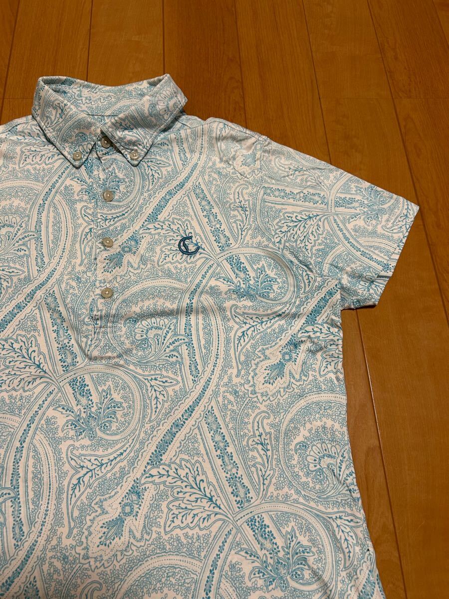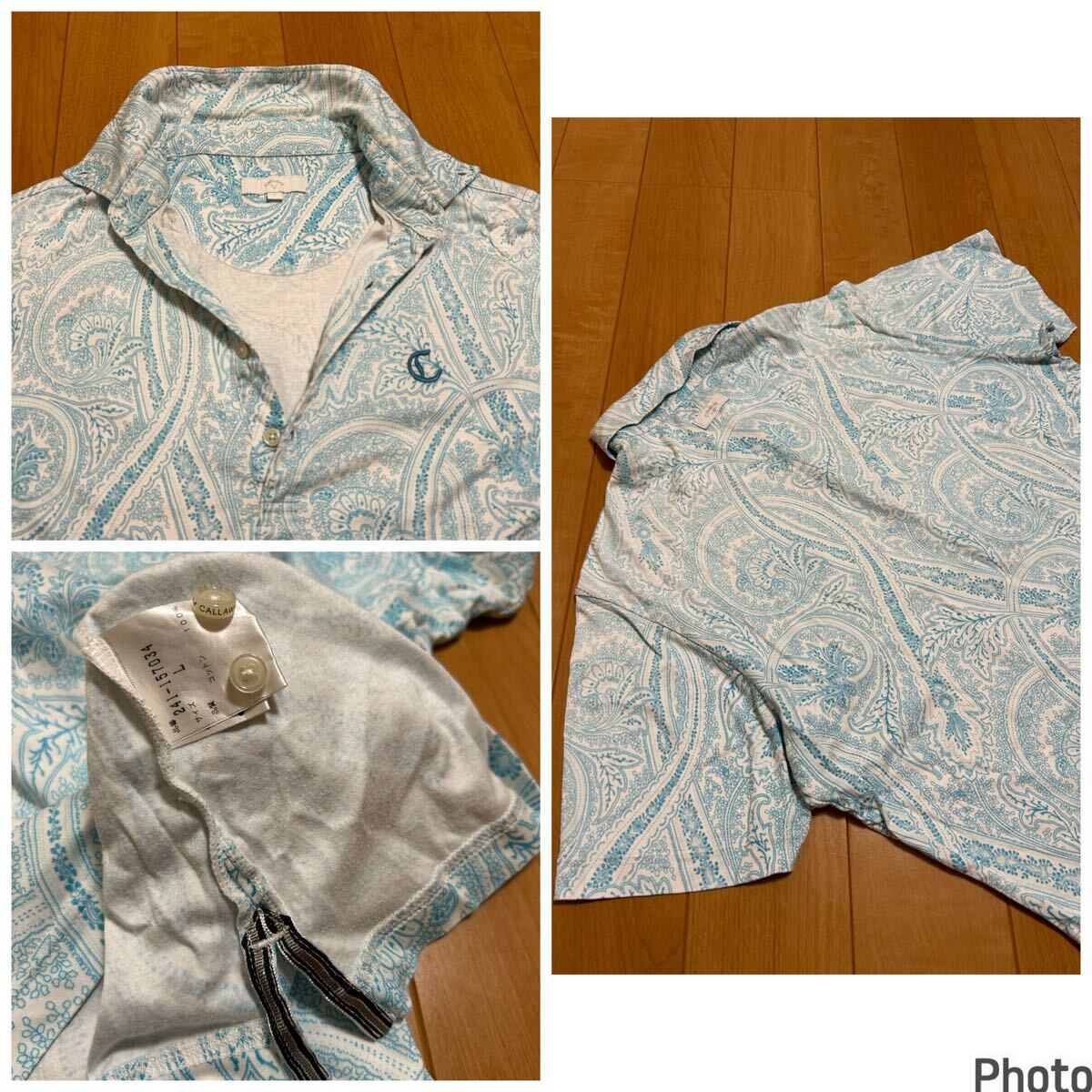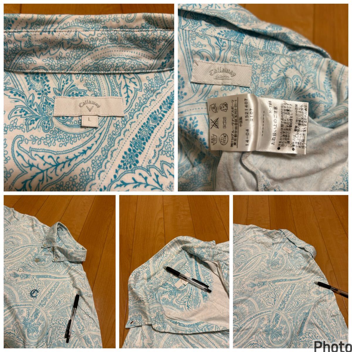 ☆Callaway/キャロウェイ メンズサイズL ストレッチ性.半袖BDポロシャツ 両面ロゴ入・希少.ペイズリー総柄デザイン!