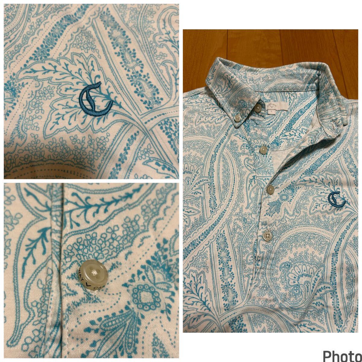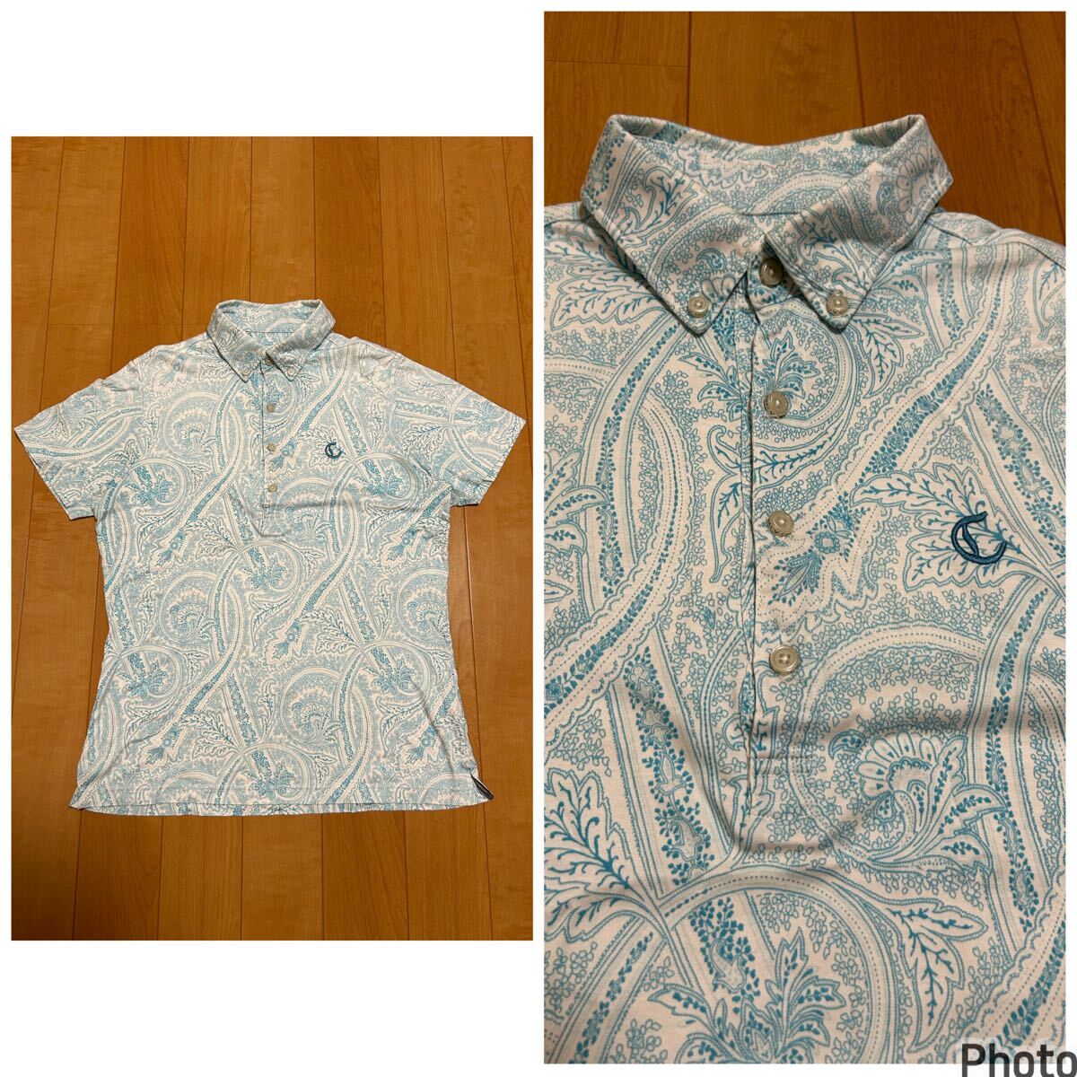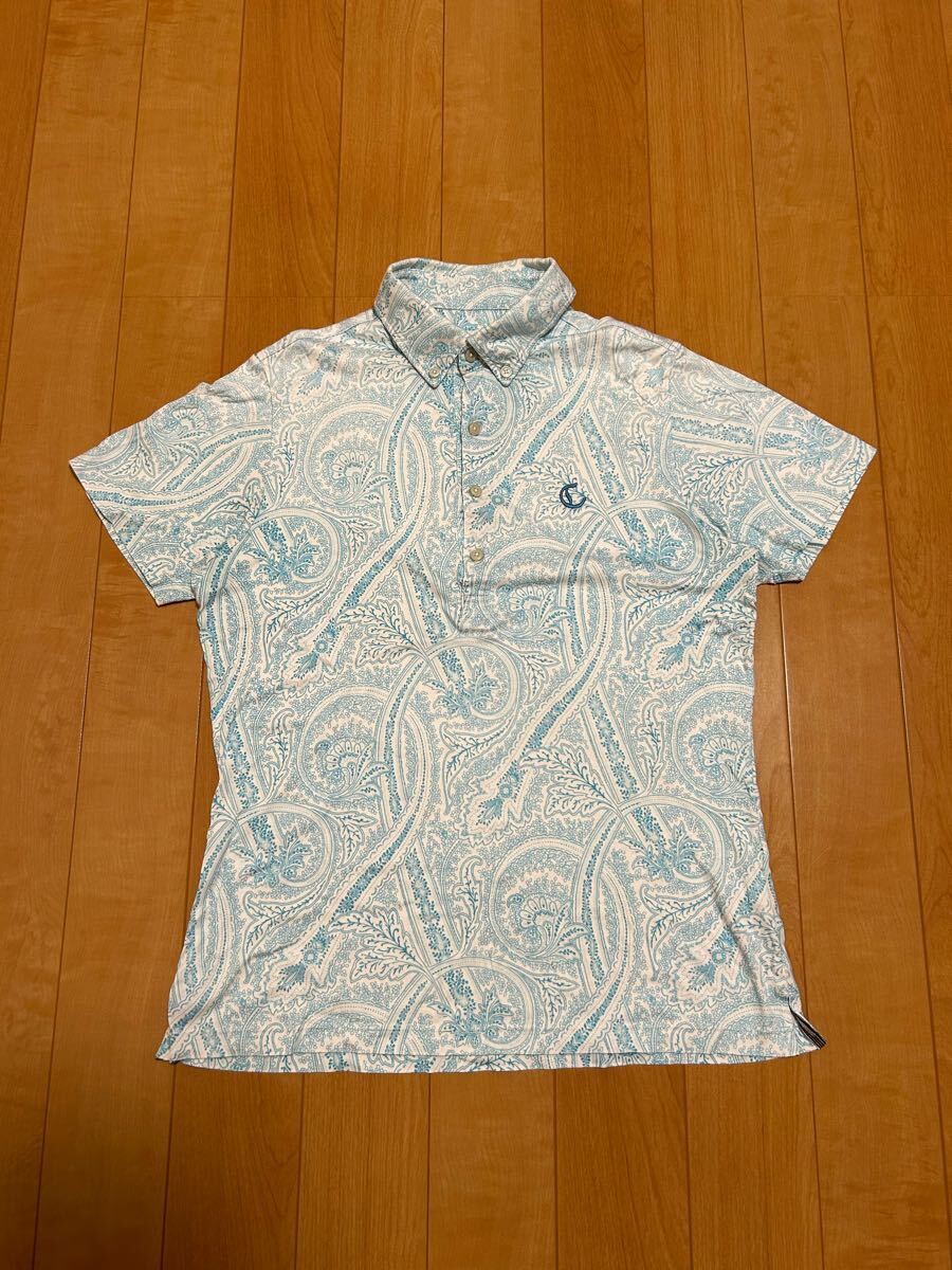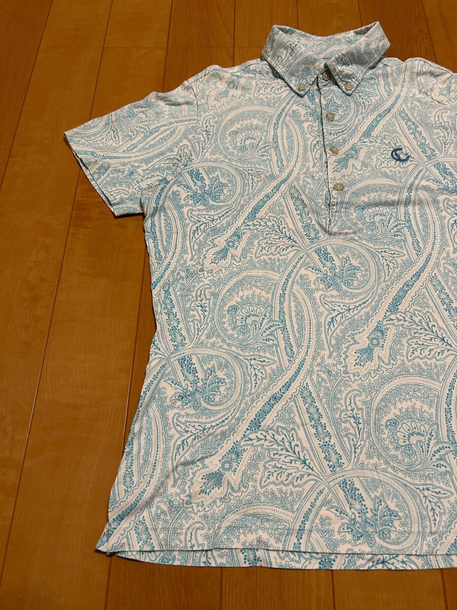 ☆Callaway/キャロウェイ メンズサイズL ストレッチ性.半袖BDポロシャツ 両面ロゴ入・希少.ペイズリー総柄デザイン!