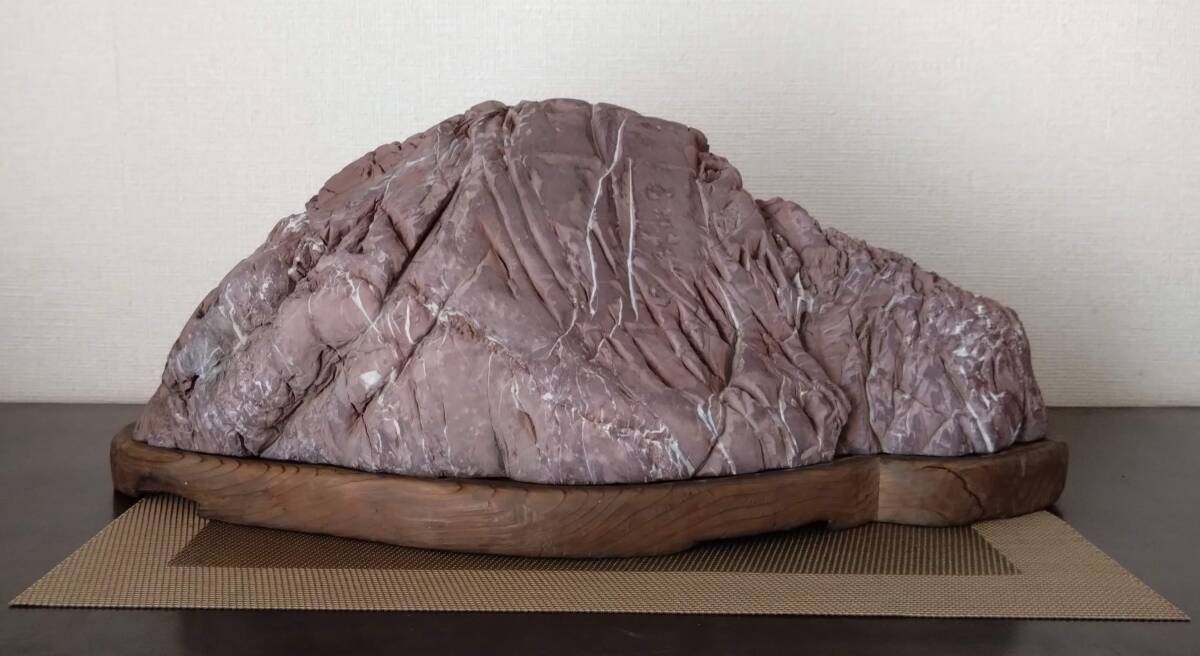 水石 鑑賞石 盆石 天然石 飾石 置物 台付 横幅約45cm 重さ約12㎏