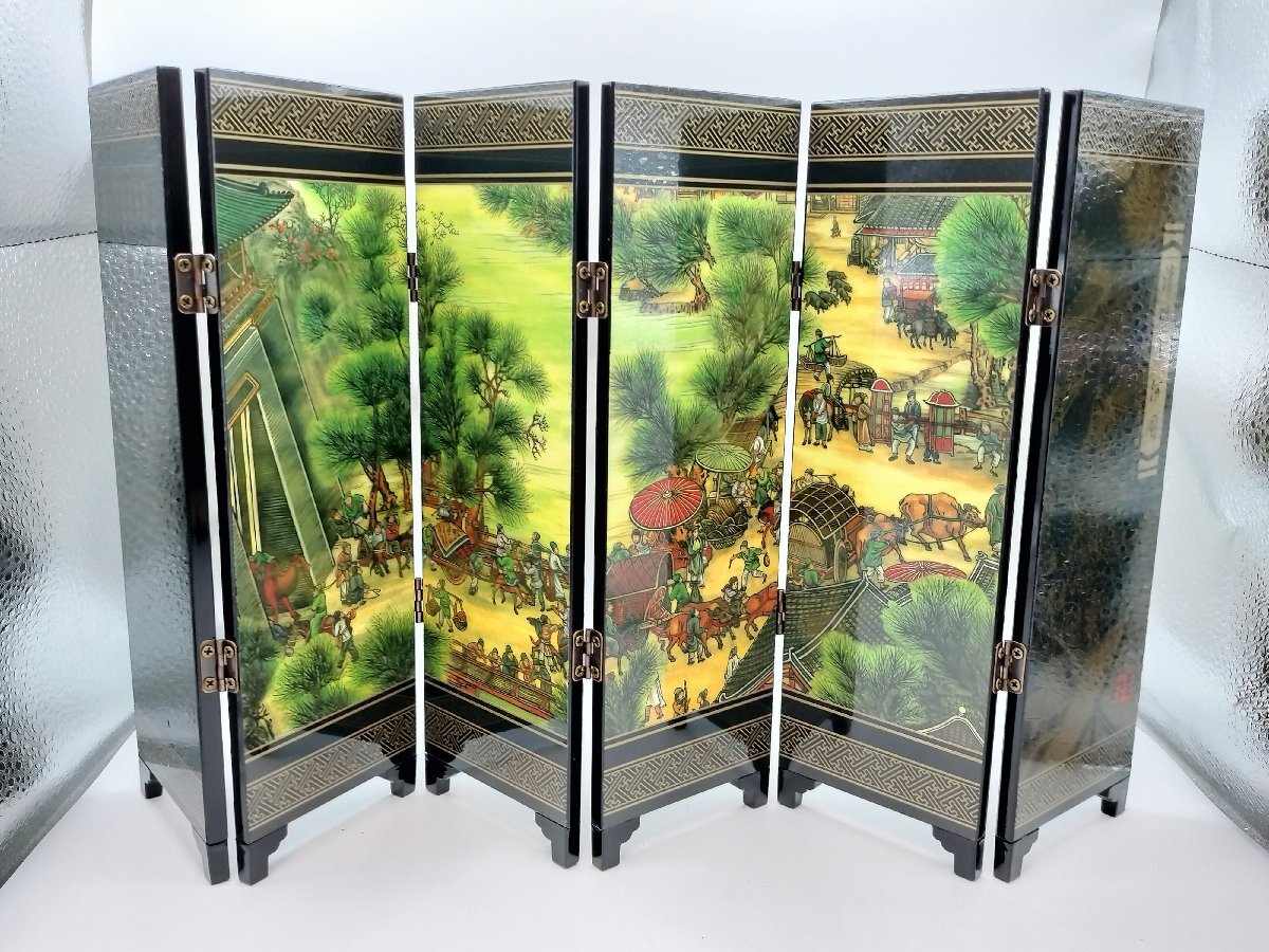 中国の屏風 清明上河図 八扇 置物 彷古小屏風 ミニデスクトップ折りたたみスクリーン 6パネル仕切り J1446-2
