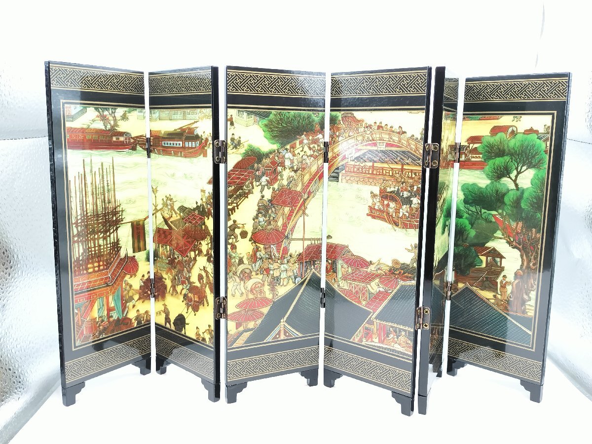中国の屏風 清明上河図 八扇 置物 彷古小屏風 ミニデスクトップ折りたたみスクリーン 6パネル仕切り J1446-2