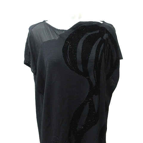 ツモリチサト TSUMORI CHISATO ワンピース ひざ丈 フレンチスリーブ ウール 2 M 黒 ブラック /YI レディース