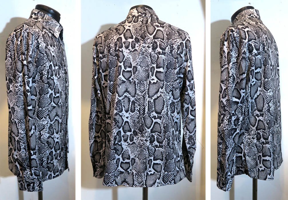 新品 Sサイズ パイソン柄 ヘビ柄 シャツ 長袖 グレー 1153 メンズ 柄シャツ 蛇 スネーク エレガント ロカビリー ウエスタン ロック