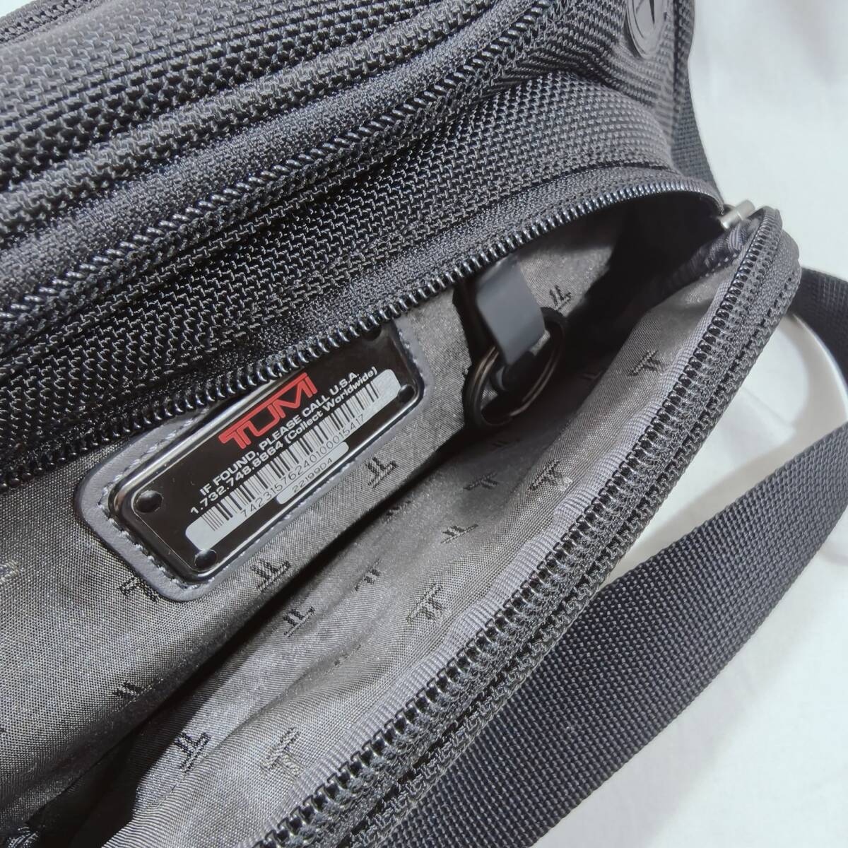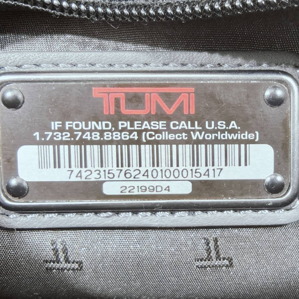 ・TUMI特有の金属タグやバーコードプレートもはっきりしています。