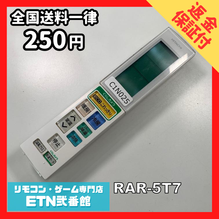 C1N025 【送料250円】エアコン リモコン / 日立 ヒタチ HITACHI RAR-5T7 動作確認済み★即発送★ * 冷房 暖房