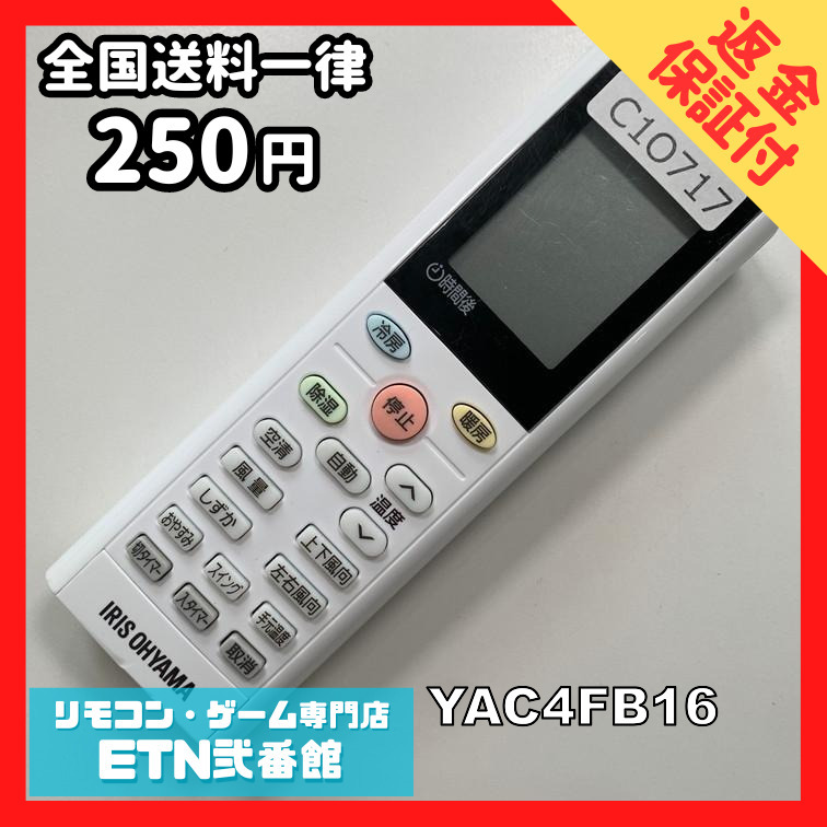 C1O717 【送料250円】エアコン リモコン / アイリスオーヤマ IRIS OHYAMA YAC4FB16 動作確認済み★即発送★ * 冷房 暖房