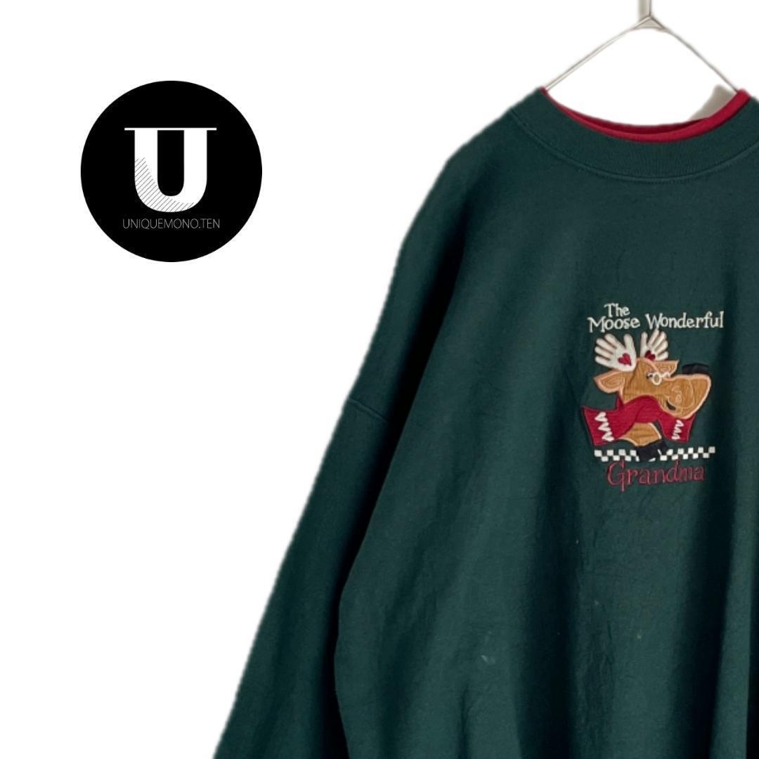 古着 ユーズド レトロ ユニセックス オールド 服 ファッション 長袖 トレーナー MOOSE ヘラジカ おばあちゃん