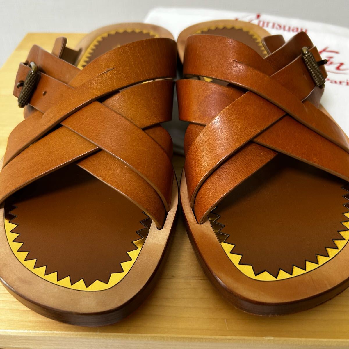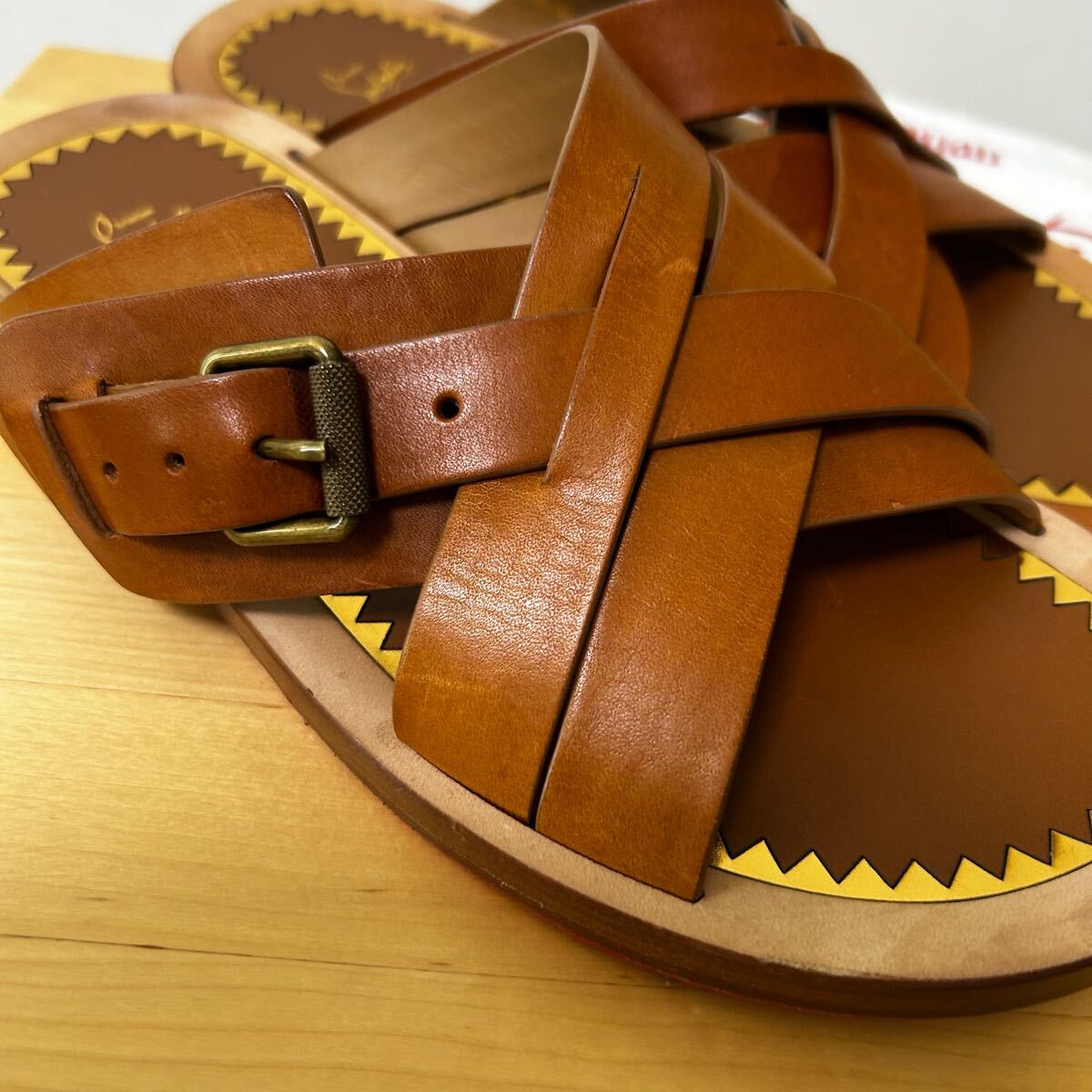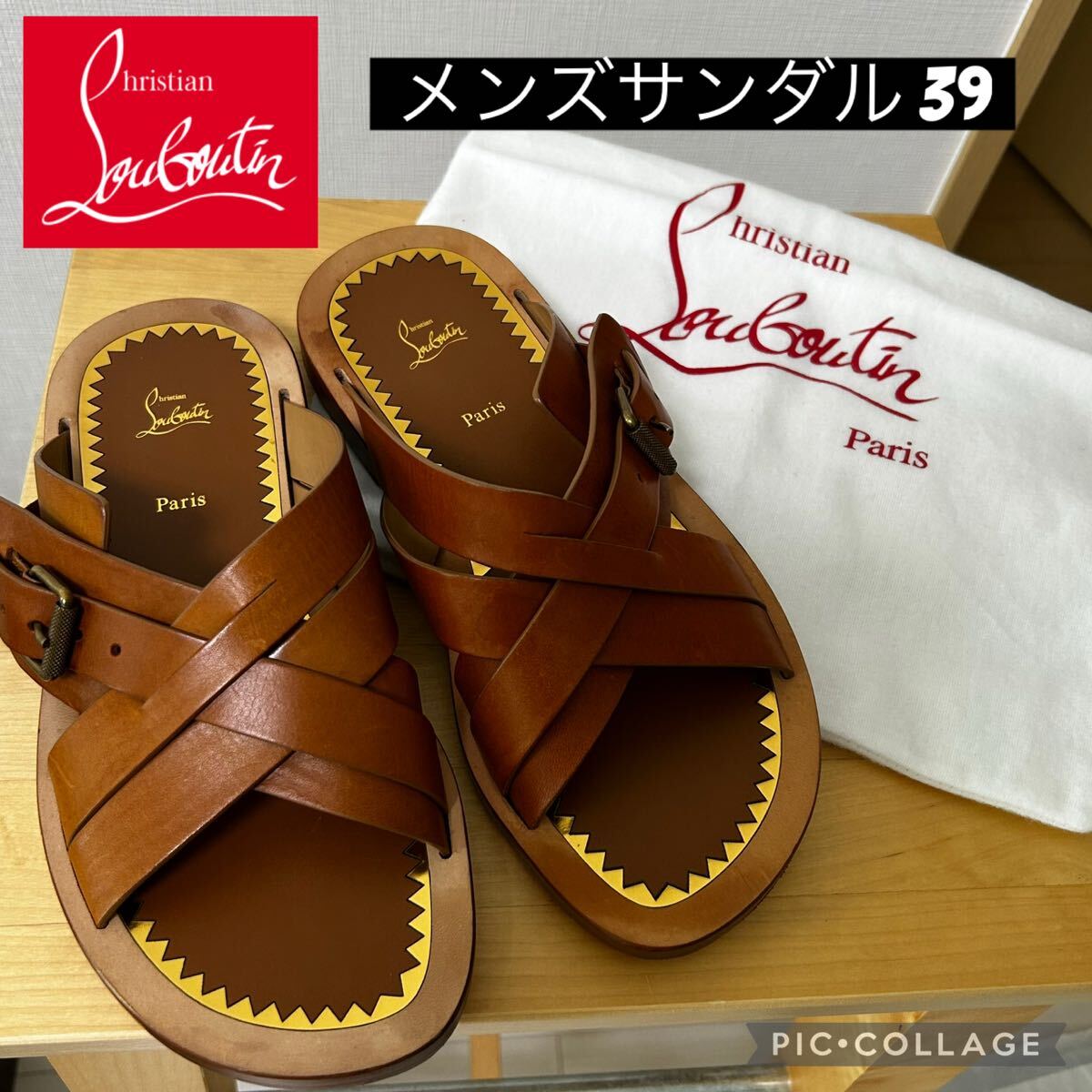 高品質なレザーを使用したブラウンのメンズサンダル、サイズ39。