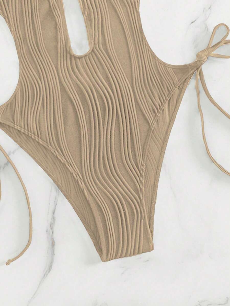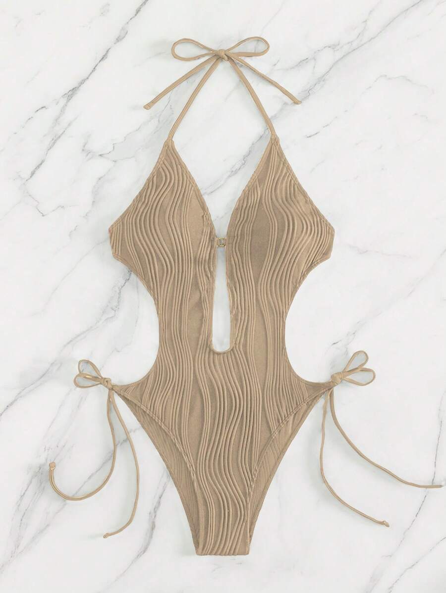 レディース 水着 ワンピース ワンピース水着 無地 ホールアウトネック デザイン、バケーションやビーチにぴったり
