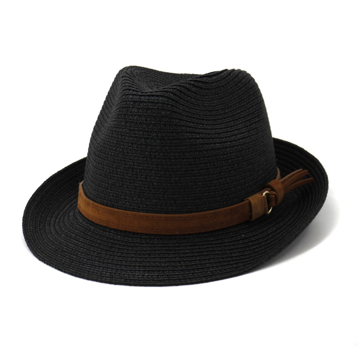 人気品お色選択可中折れハット 麦わら帽子 メンズ レディース ストローハット 幅広 麦わらハット 夏 ペーパー ハット ブラック