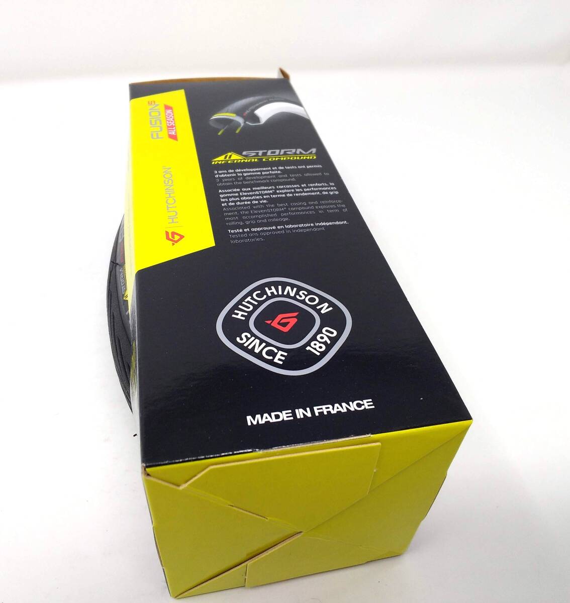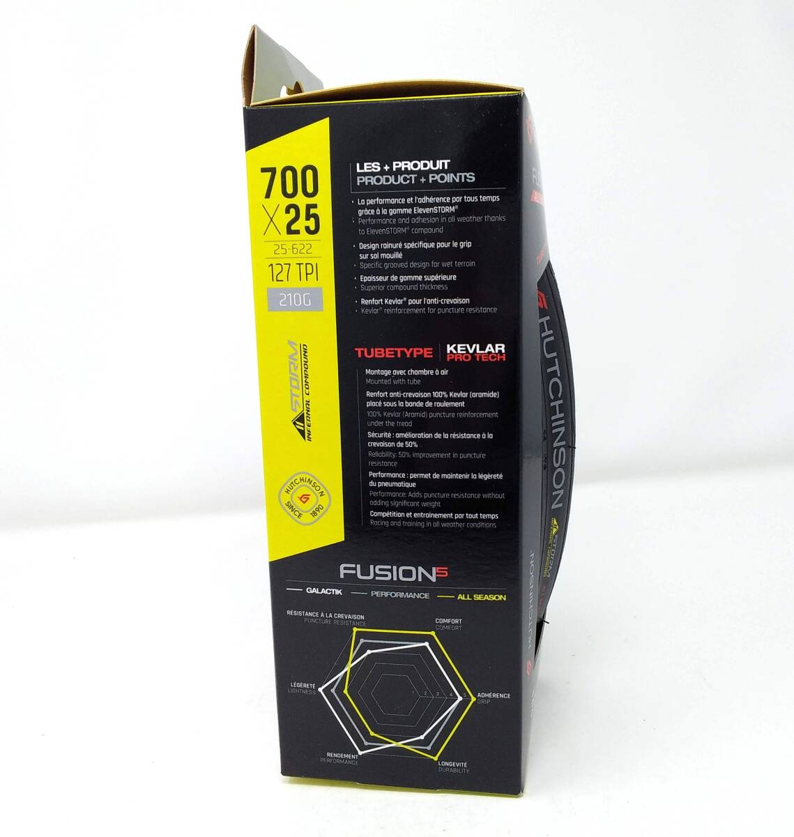 1  優れた耐パンク性能 FUSION 5 11 STORMは、HUTCHINSONの「アームド・ガード(Aramid Guard)」テクノロジーを採用しており、優れたパンク耐性を誇ります。特にガラスの破片や小さな石などからタイヤを守り、長時間のライドでも安心して走行できます。