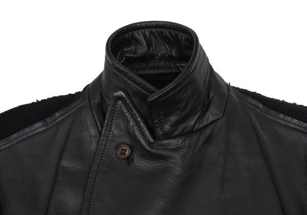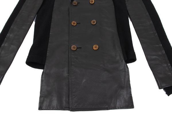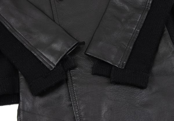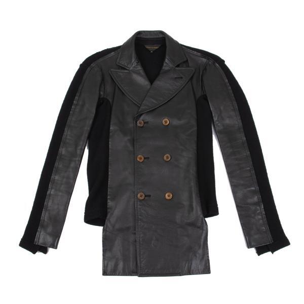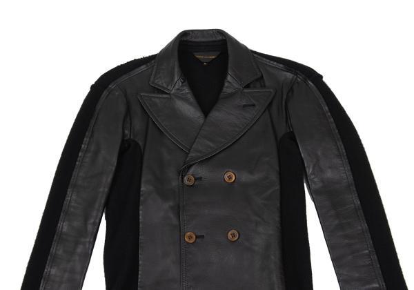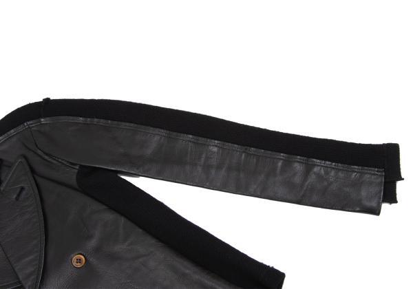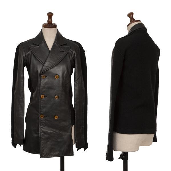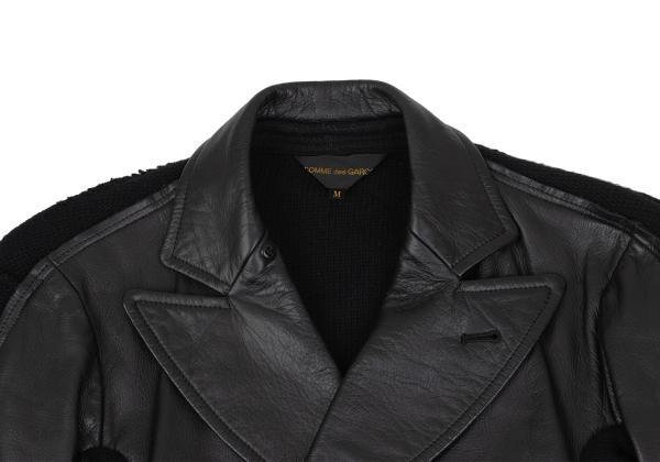 | コムデギャルソンCOMME des GARCONS バックニット切替レザーダブルブレストコート 黒M |