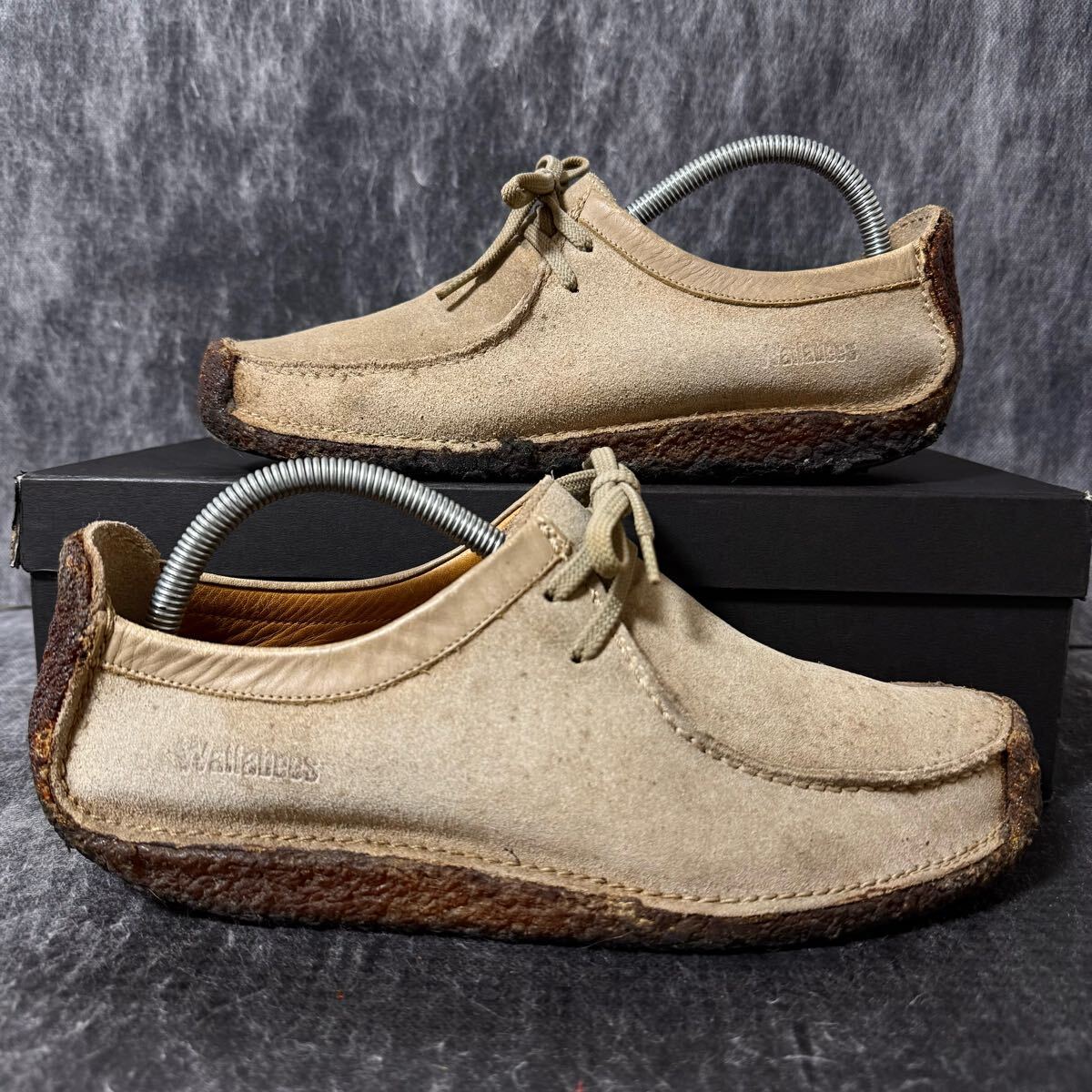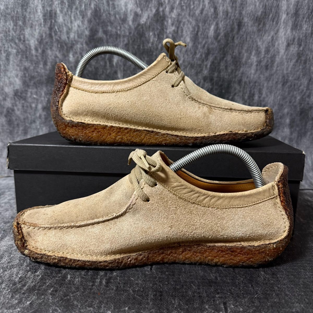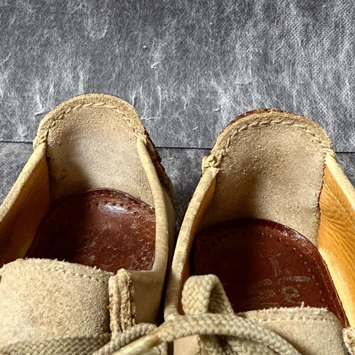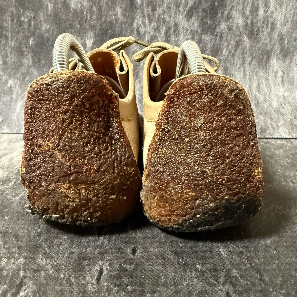 アッパー全体の汚れ、ヒールの擦れなど見受けられます。