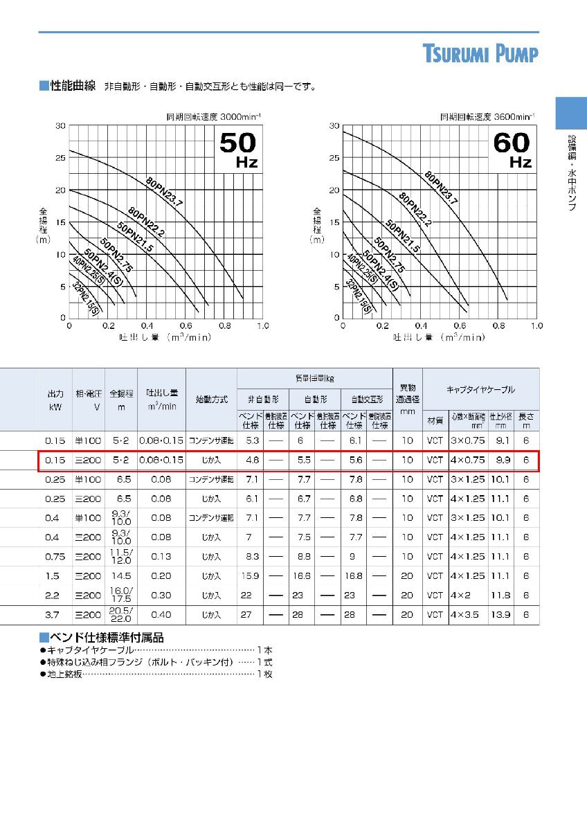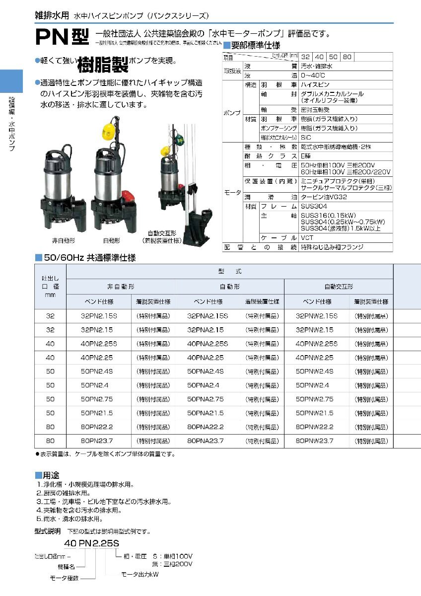 鶴見製作所 ツルミポンプ 32PNA2.15 60Hz 西日本用 雑排水 水中ハイスピンポンプ PN型 自動形 口径32mm 三相200V 出力0.15kW 水中ポンプ ※こちらの商品は、「代金引換」支払を ご利用いただけません。