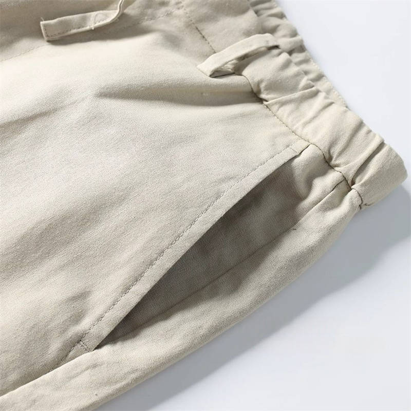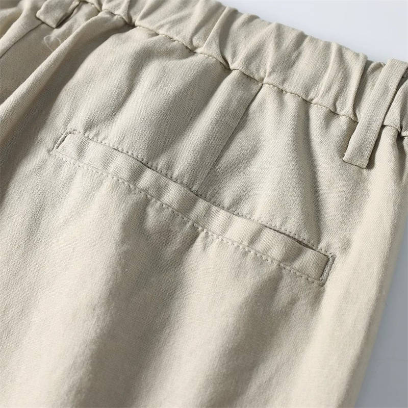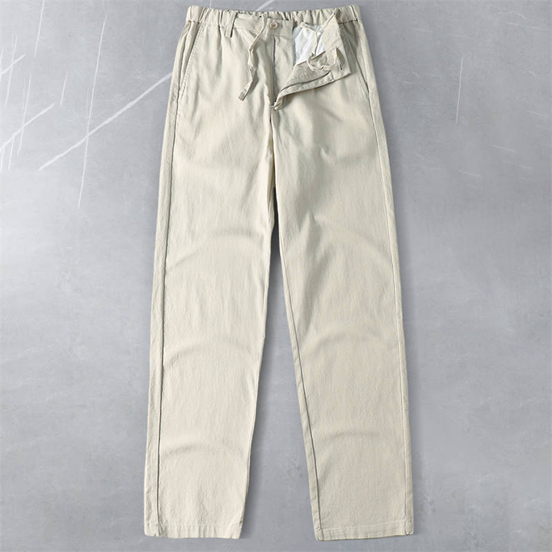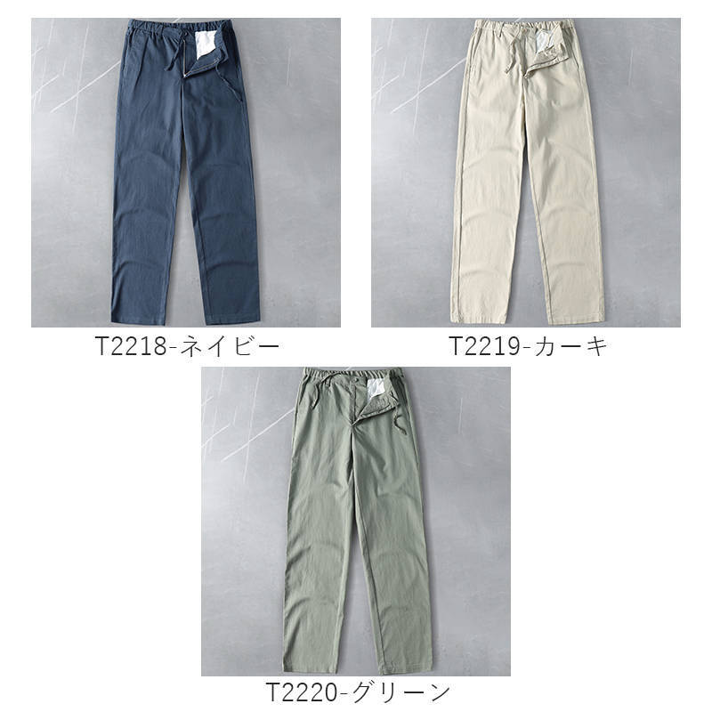 T2219-3XLカーキ 新品 コットン リネン サマー ストレートパンツ 接触冷感 抗菌防臭 通気 薄手 春夏 メンズ ウエストゴム クールビズ ビジネスカジュアル スラックス 盛夏