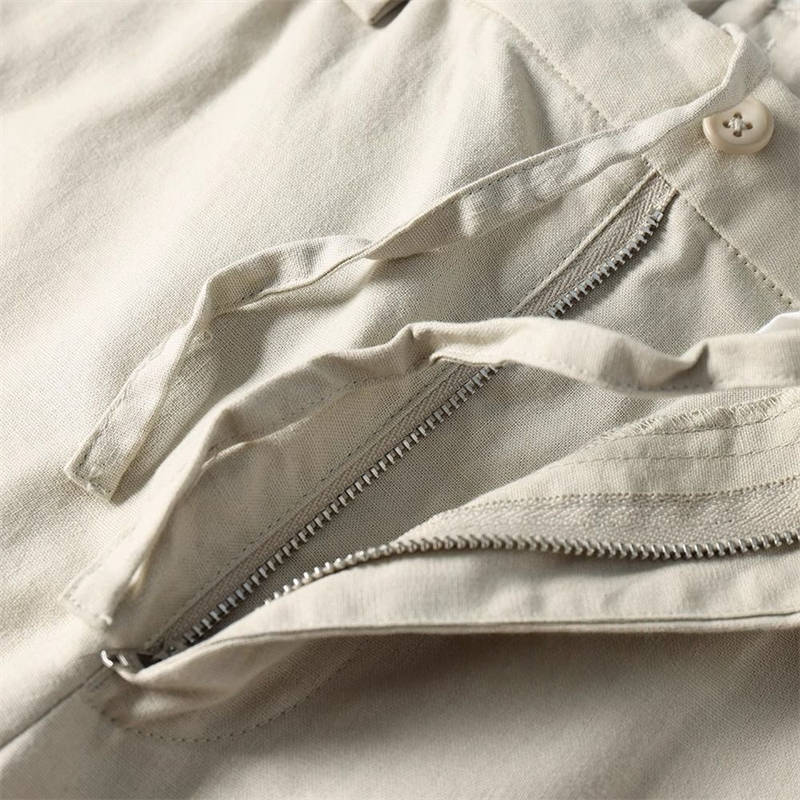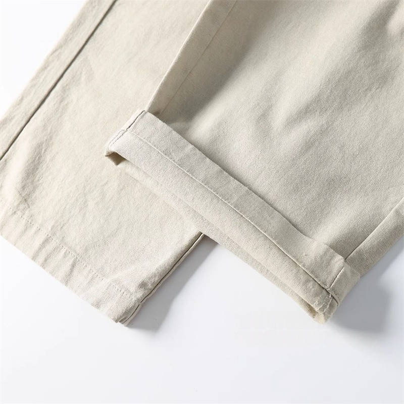 T2219-3XLカーキ 新品 コットン リネン サマー ストレートパンツ 接触冷感 抗菌防臭 通気 薄手 春夏 メンズ クールビズ スラックス 盛夏