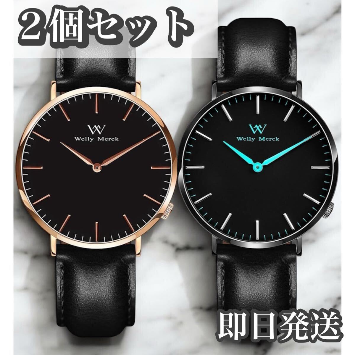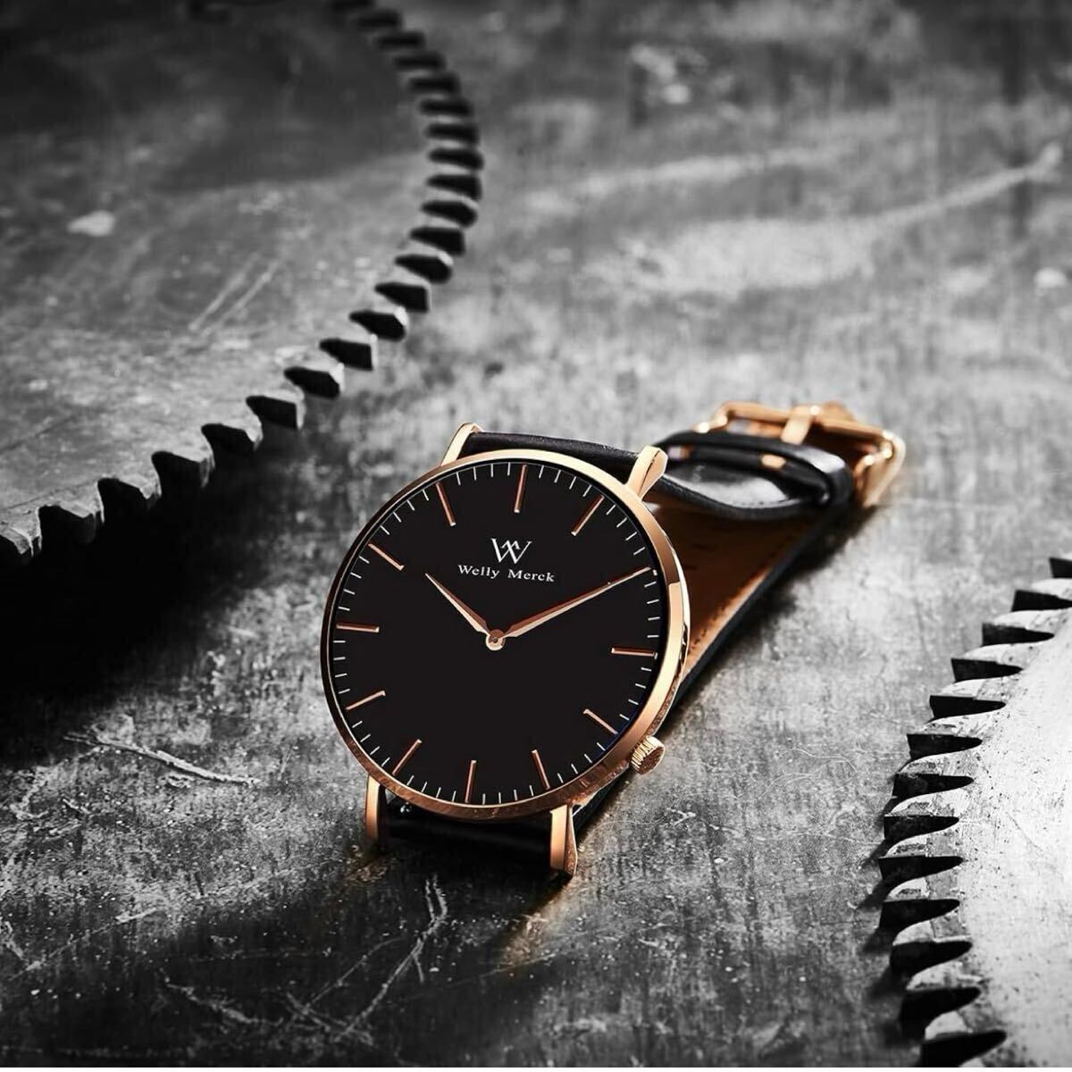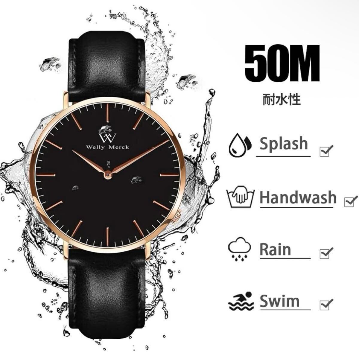 WM Welly Merck 時計 メンズ スイスブランド ビジネス サファイアガラス スイスクォーツ 42MM黒文字盤 20MM ブラックレザーベルト 日常生活防水