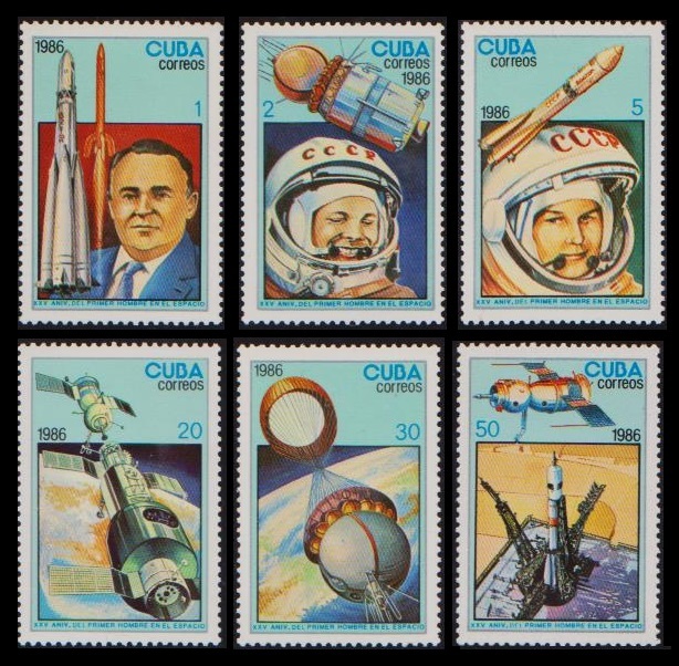 gκ251y2-7c キューバ1986年 宇宙飛行25周年・6枚完
