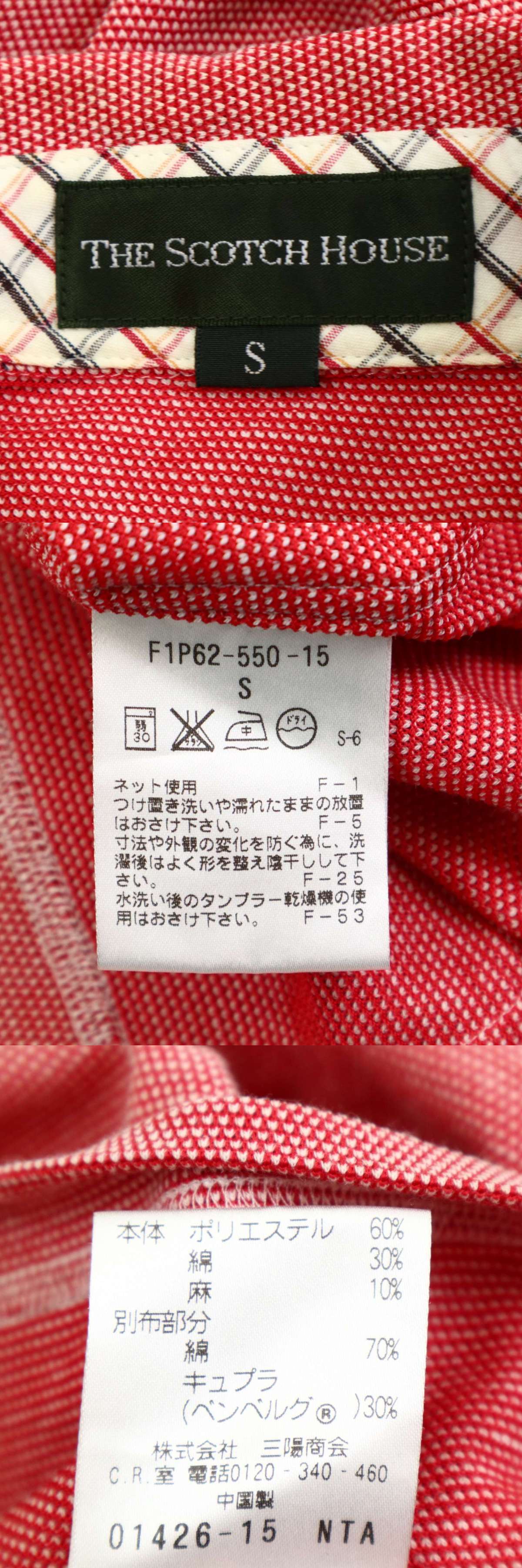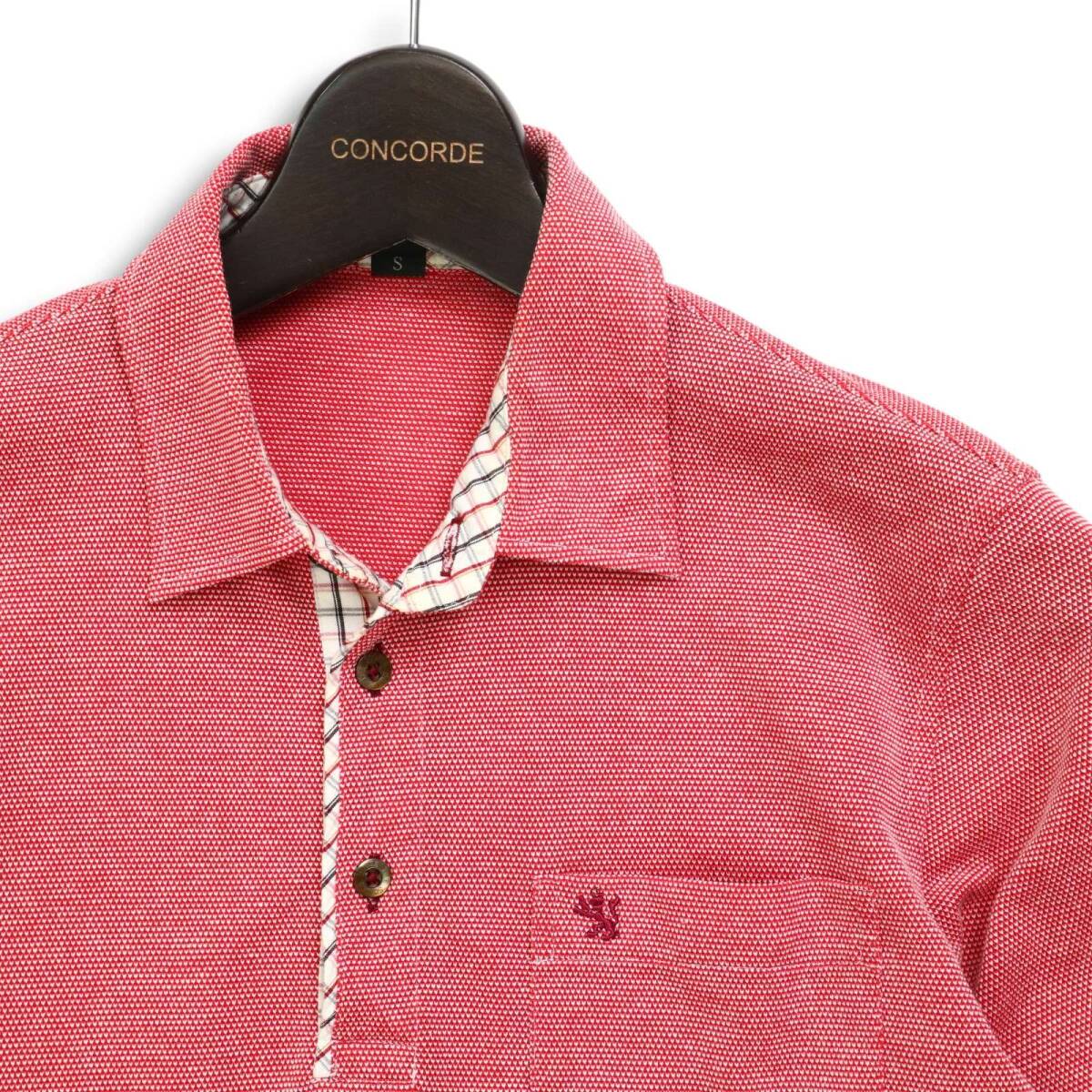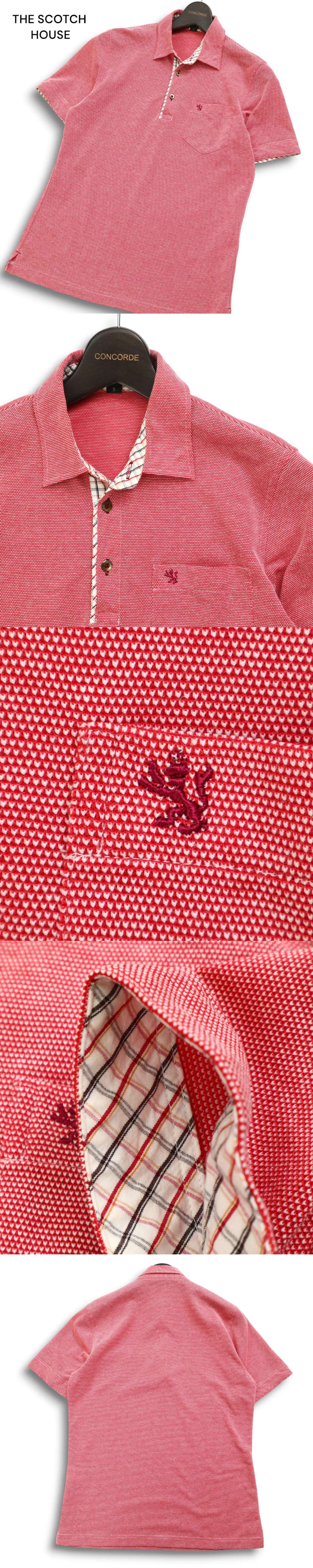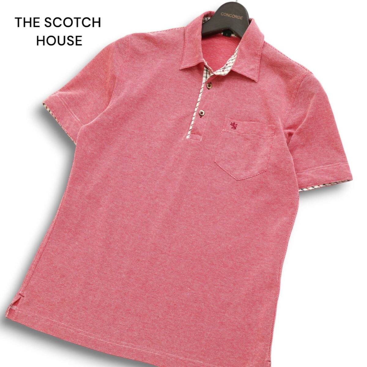 THE SCOTCH HOUSE スコッチハウス 春夏 麻 リネン混★ ロゴ刺繍 チェック使い 半袖 ポロシャツ Sz.S メンズ