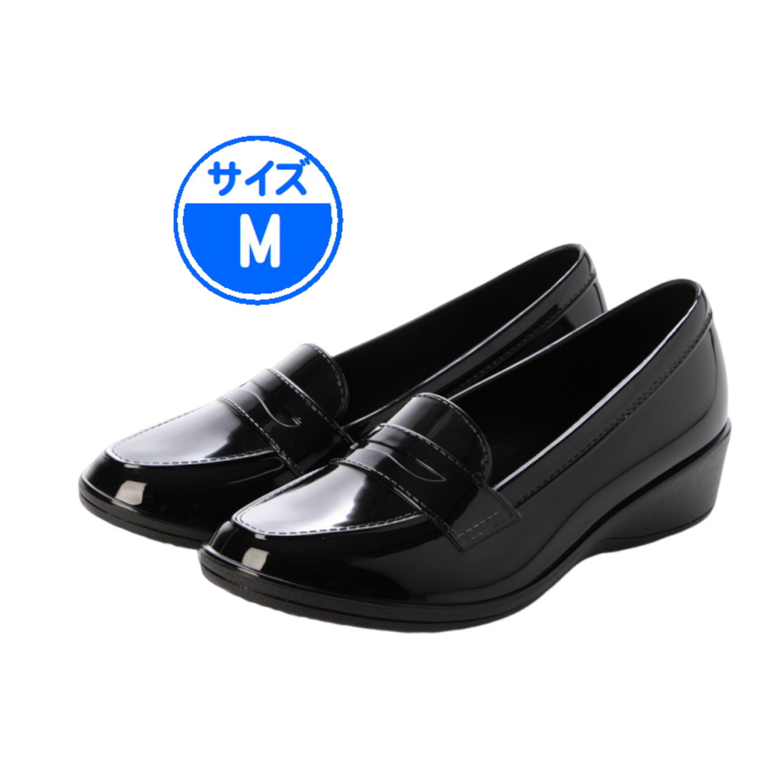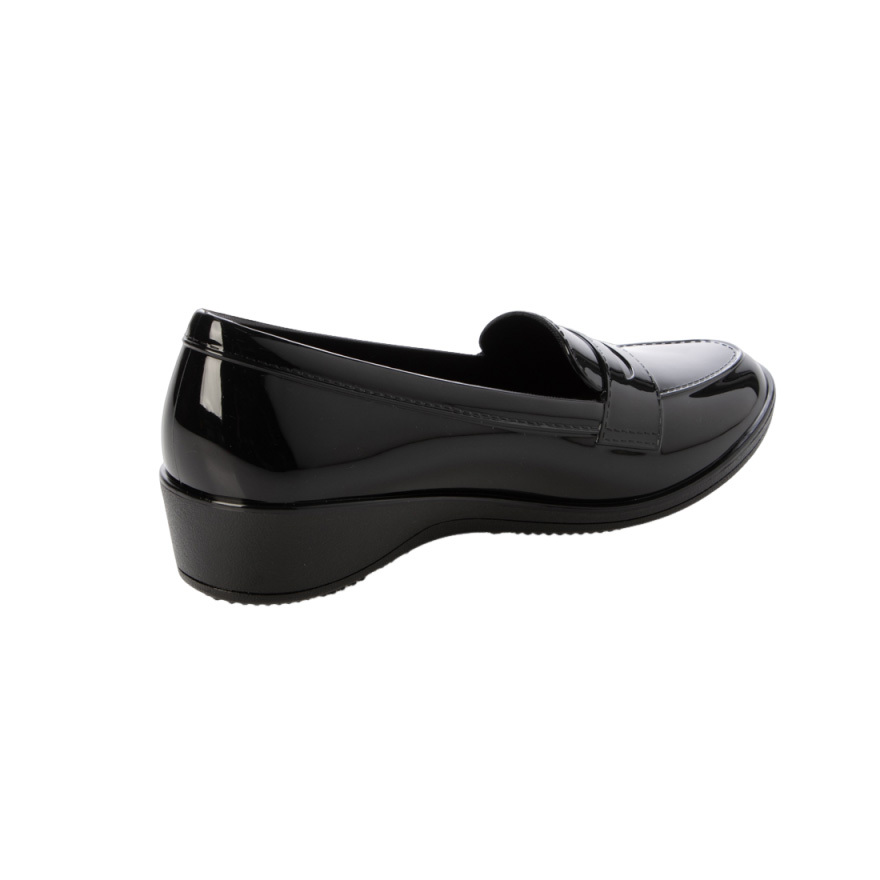 エナメルコインローファーのような見た目なので、晴れても違和感なく使用可能。