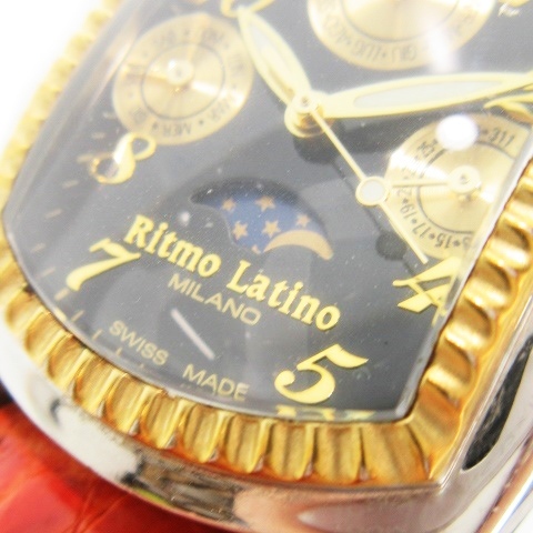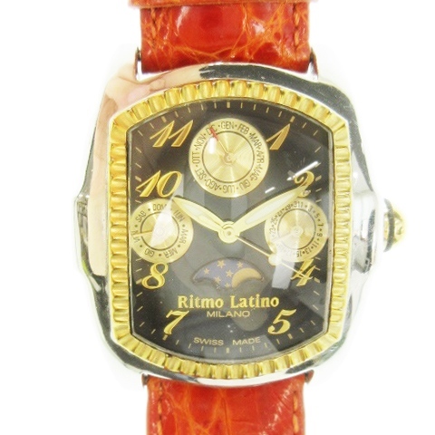 リトモラティーノ Ritmo Latino 腕時計 ウォッチ クォーツ クロノグラフ ムーンフェイズ レザー ドームガラス ゴールドカラー オレンジ