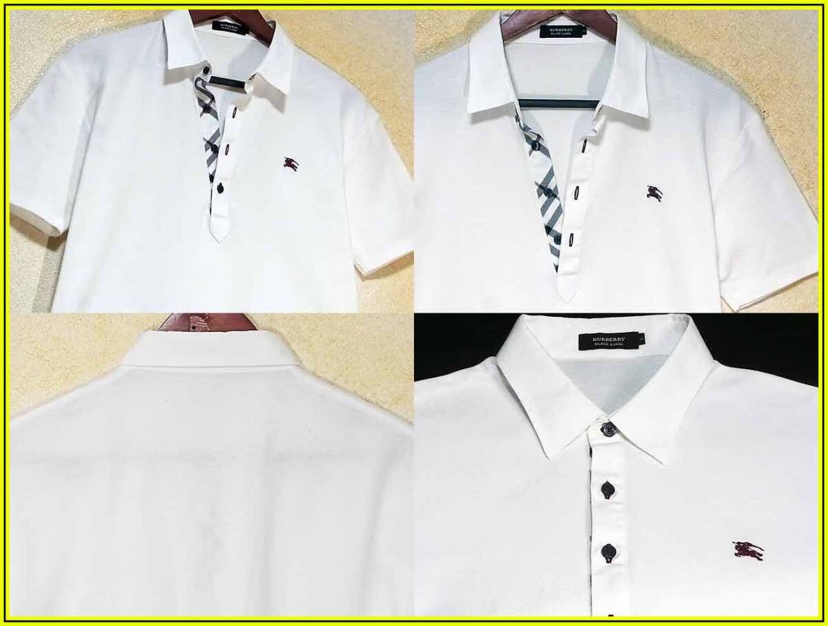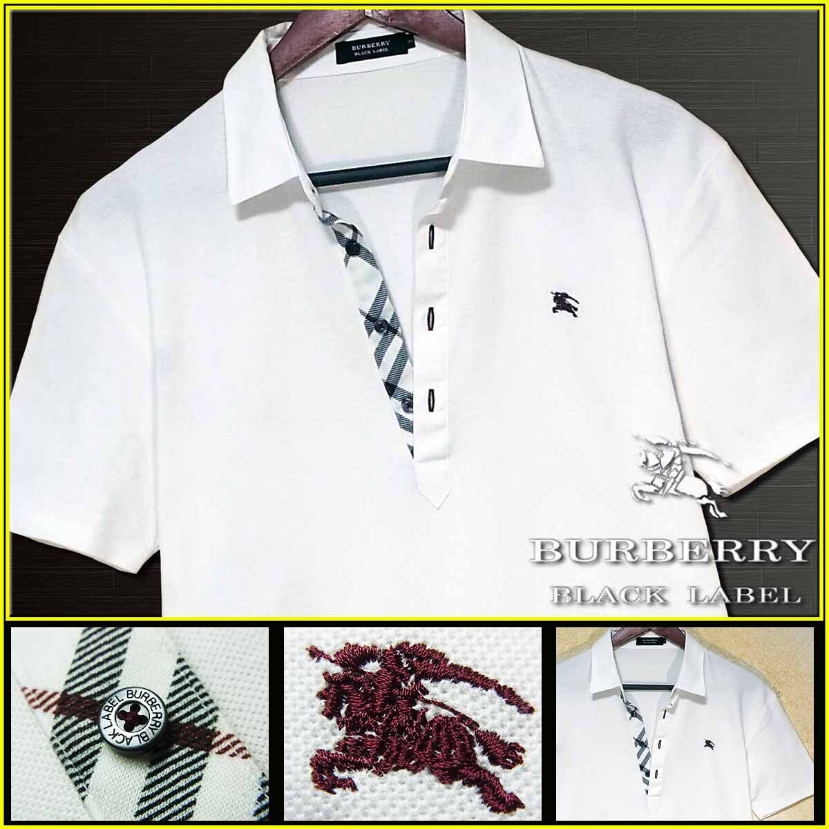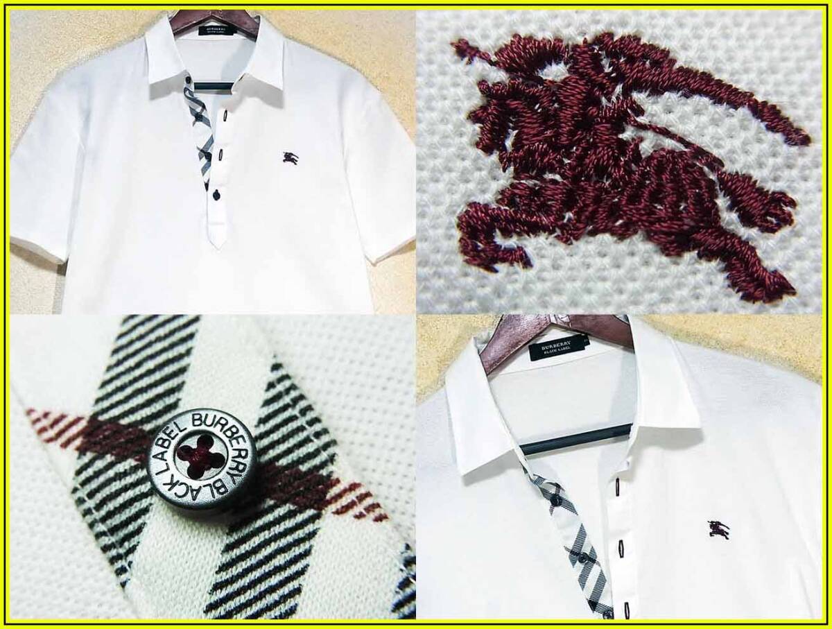 希少L!極上傑作!前立ノバチェック ホワイト ポロシャツ ナイト刺繍入 日本製▼バーバリーブラックレーベル BURBERRY BLACK LABEL