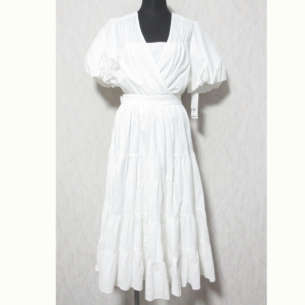 商品名:SNIDEL スナイデル ティアードボリュームカシュクールワンピース 半袖 ロング フレアドレス SWFO217005 F ホワイト
