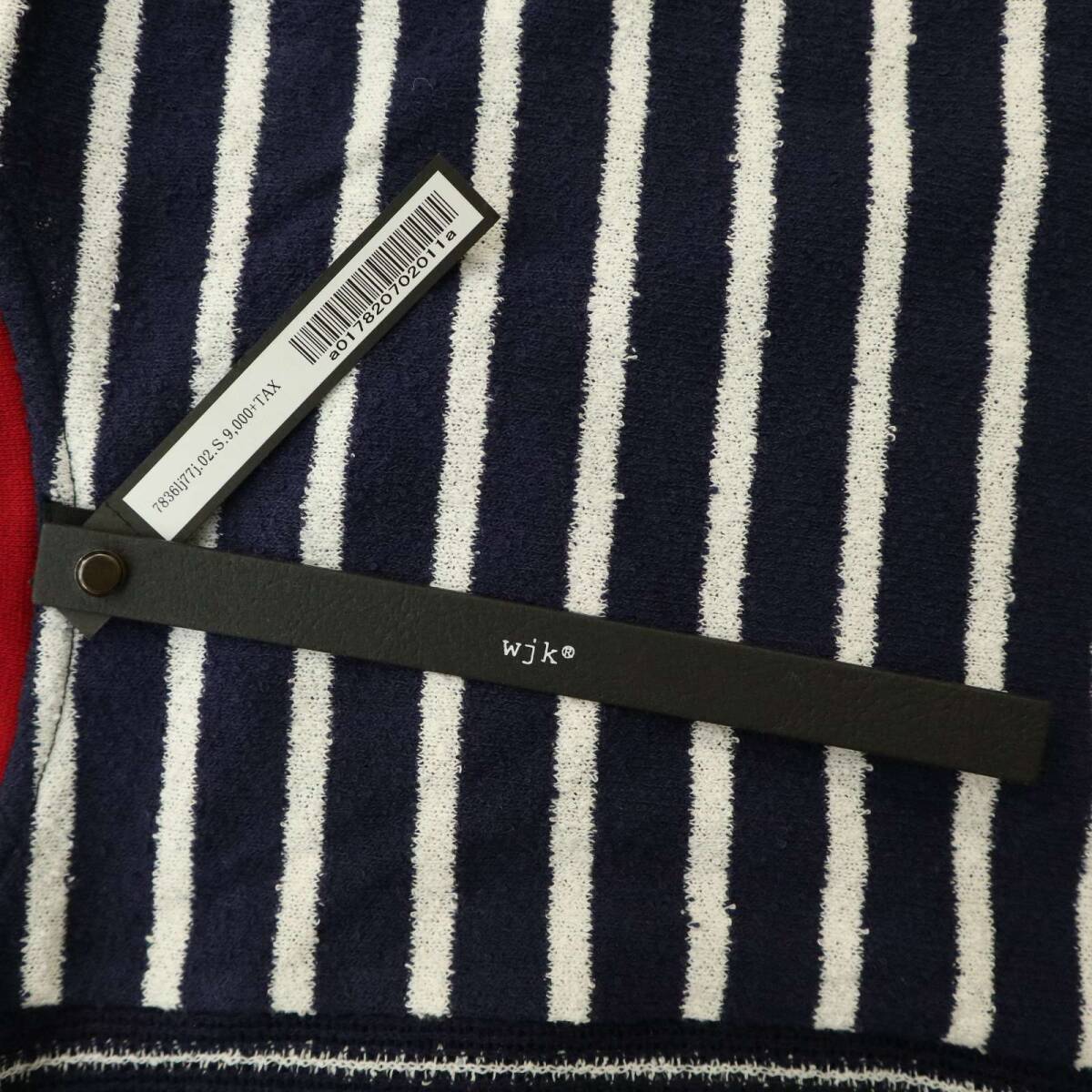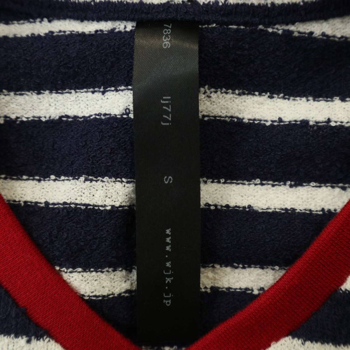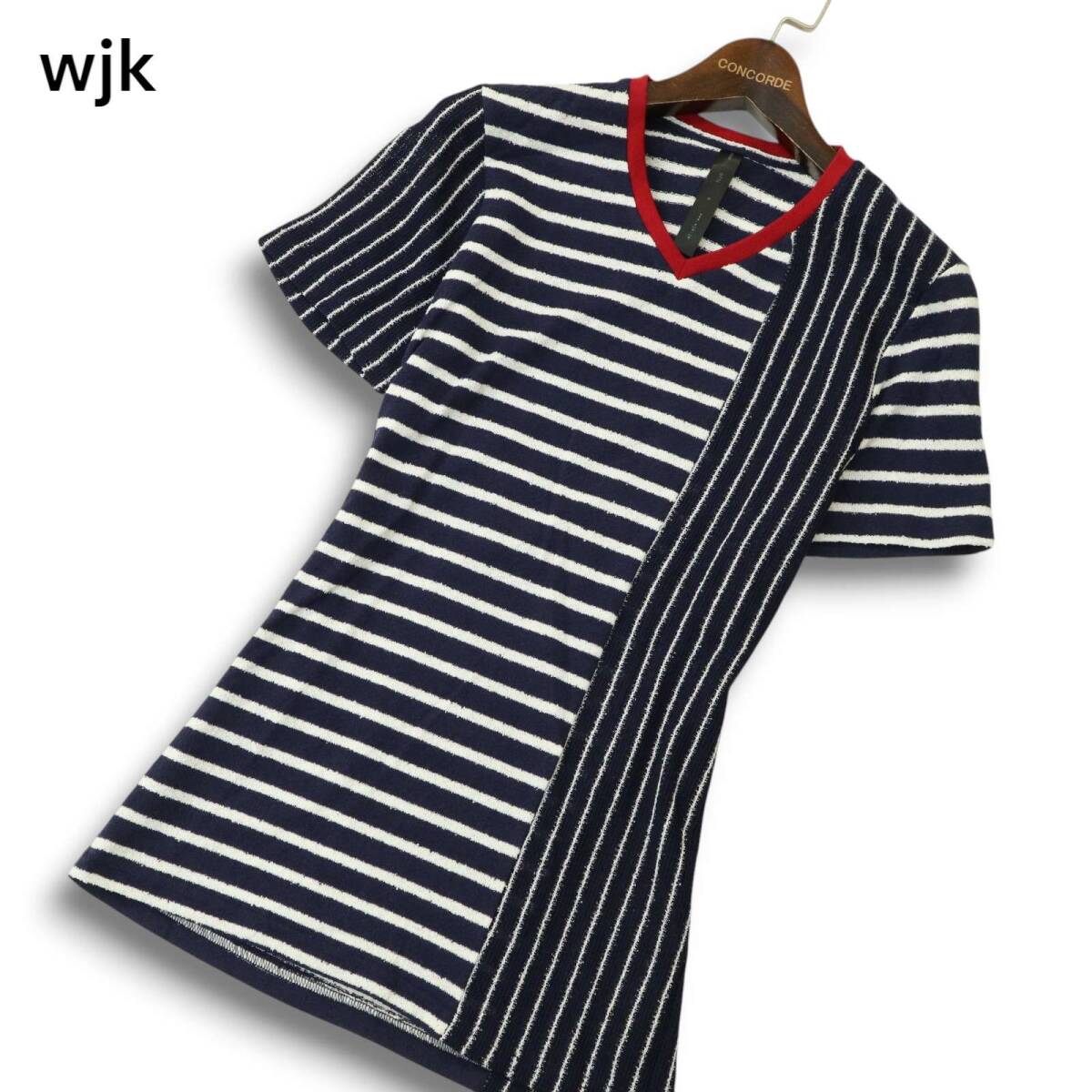 【新品 未使用】 wjk ダブルジェイケイ ボーダー ストライプ スイッチ★ 半袖 Vネック カットソー Tシャツ Sz.S メンズ 紺