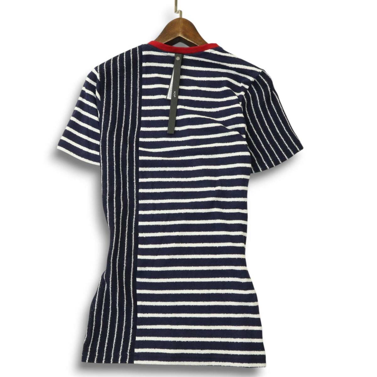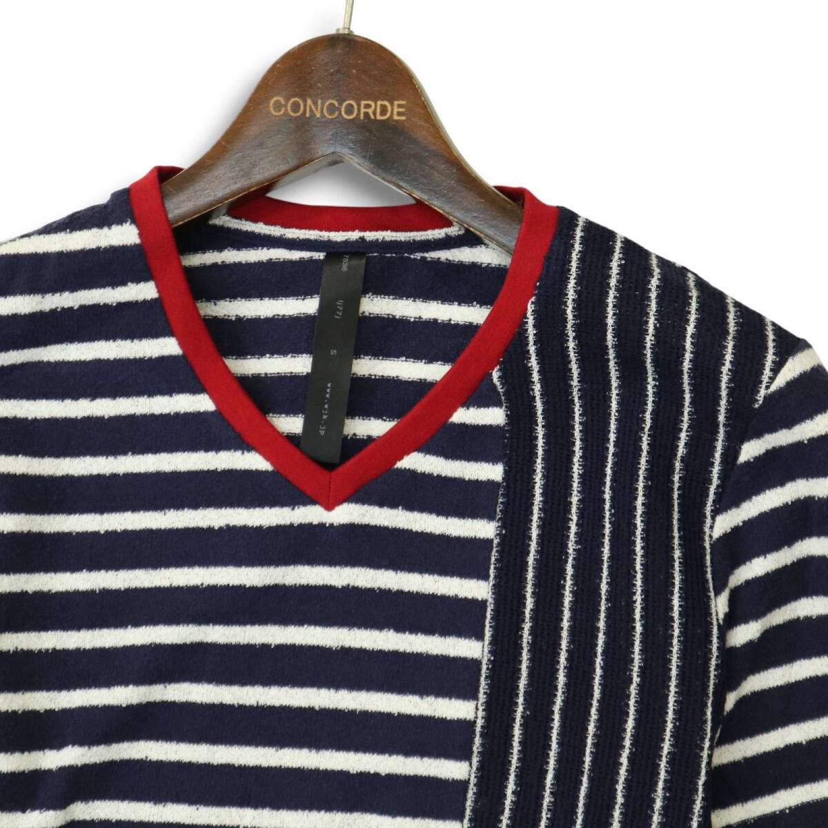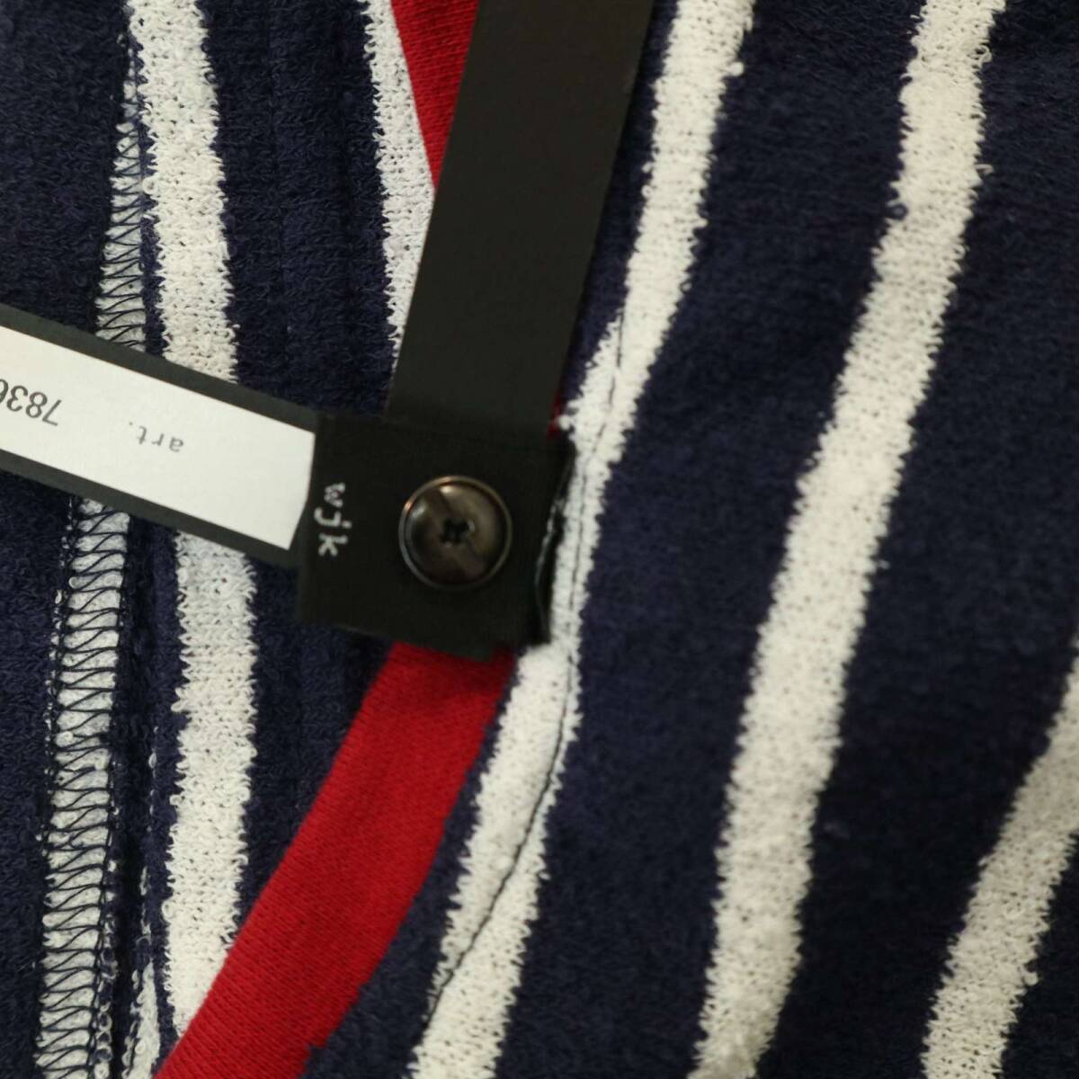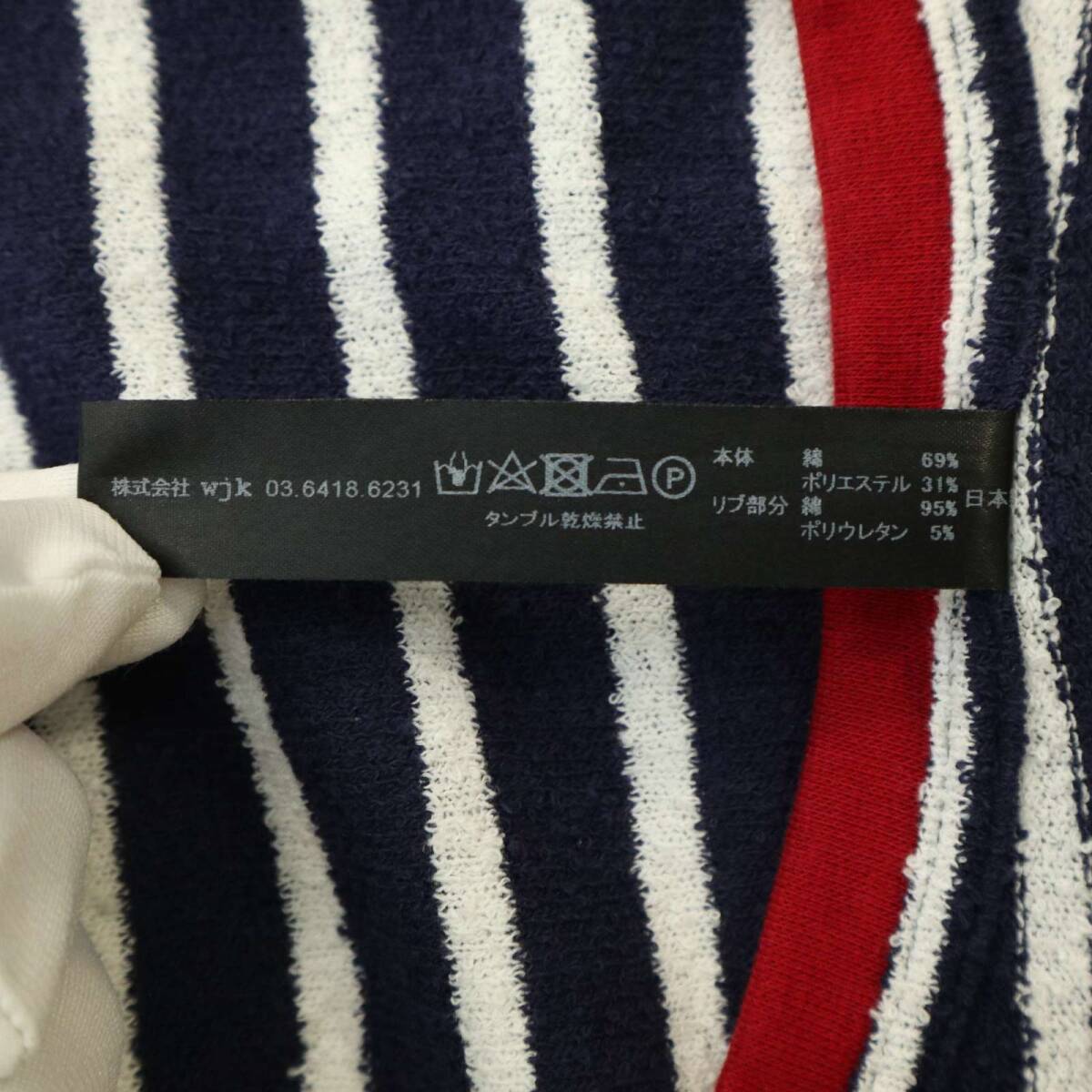 【新品 未使用】 wjk ダブルジェイケイ ボーダー ストライプ スイッチ★ 半袖 Vネック カットソー Tシャツ Sz.S メンズ 紺