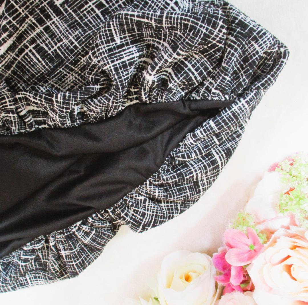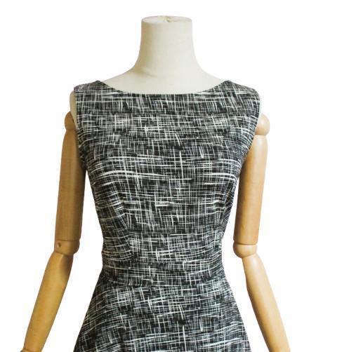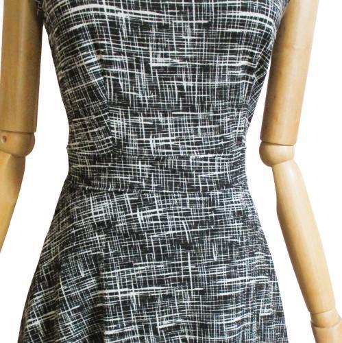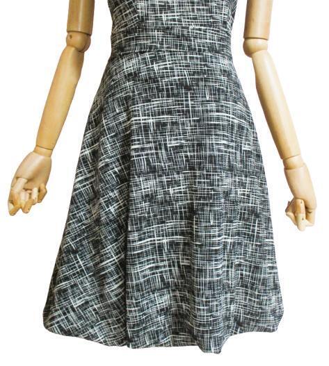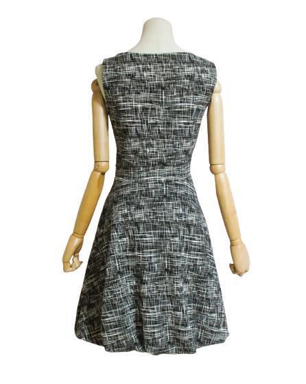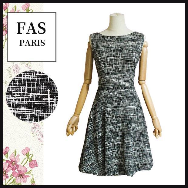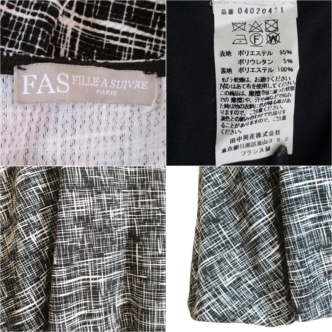 【ファス】ワンピース バルーン裾 ストレッチ 膝丈 フランス製 伸縮性 膝丈黒白 FAS Fille A Suivre PARIS 総柄 T1 匿名発送