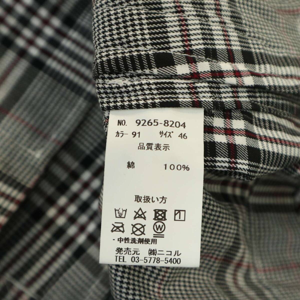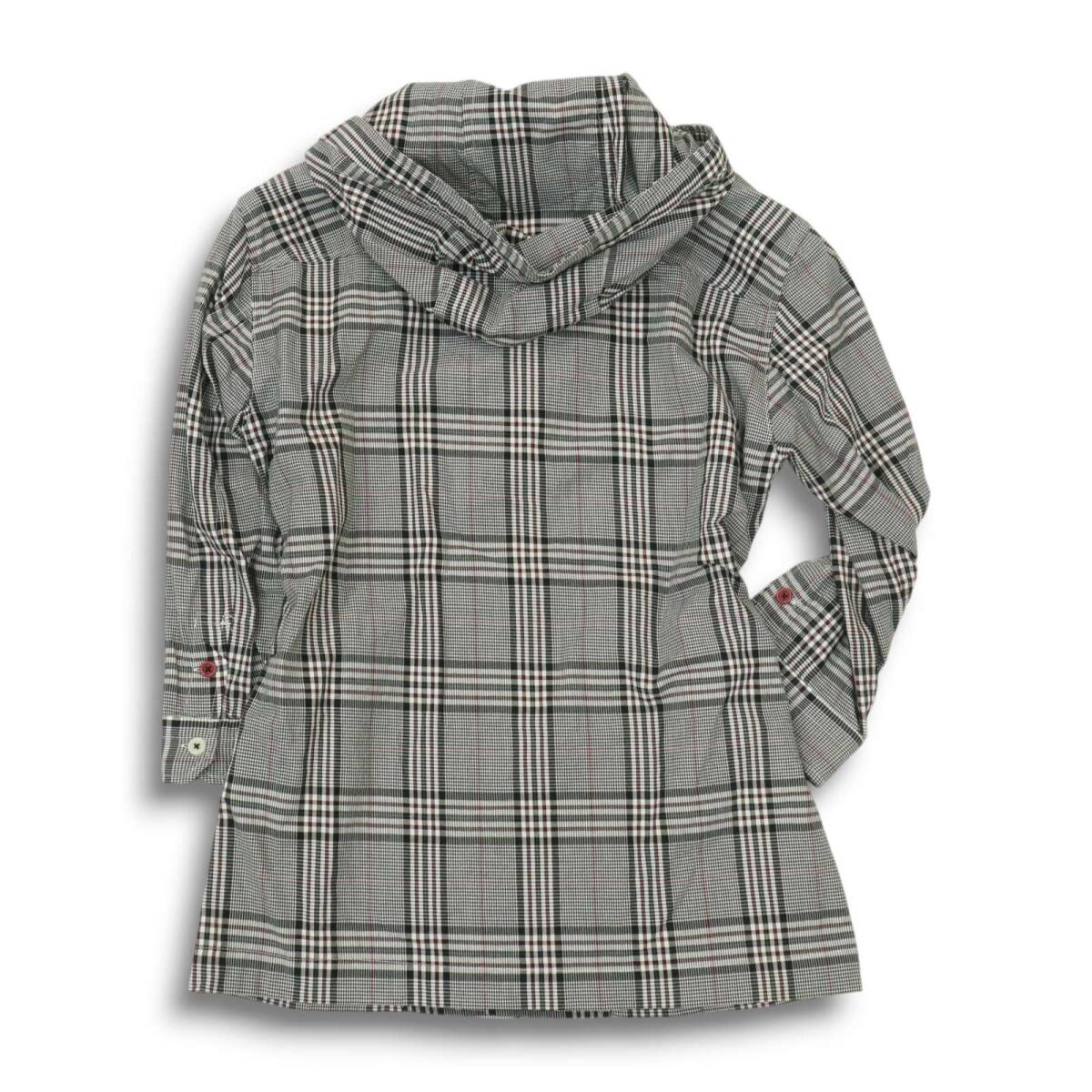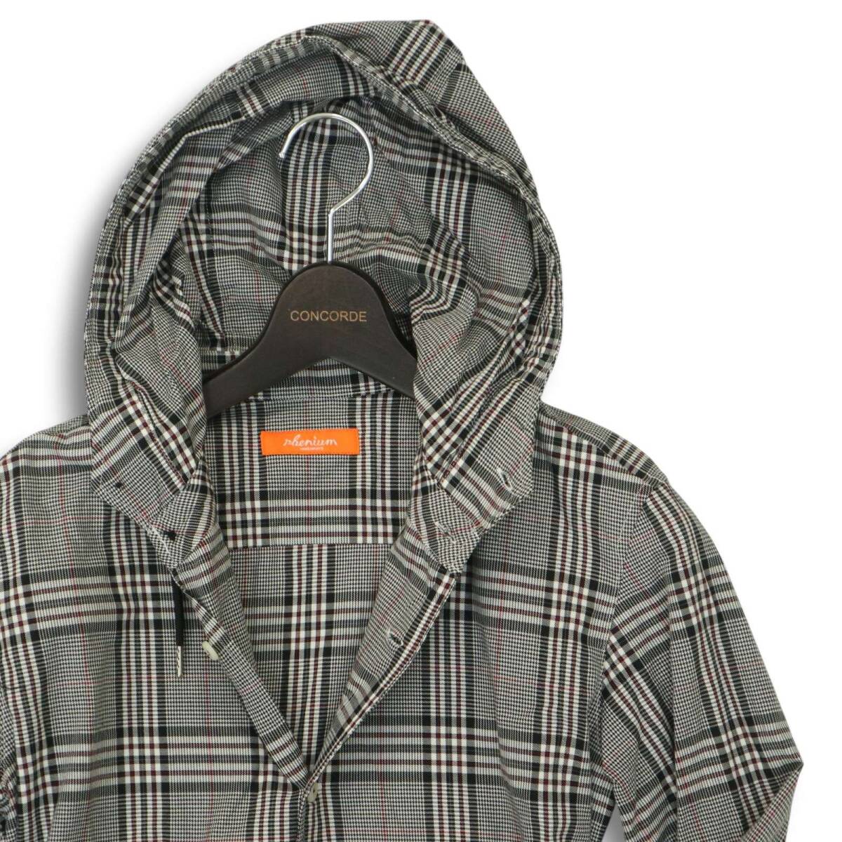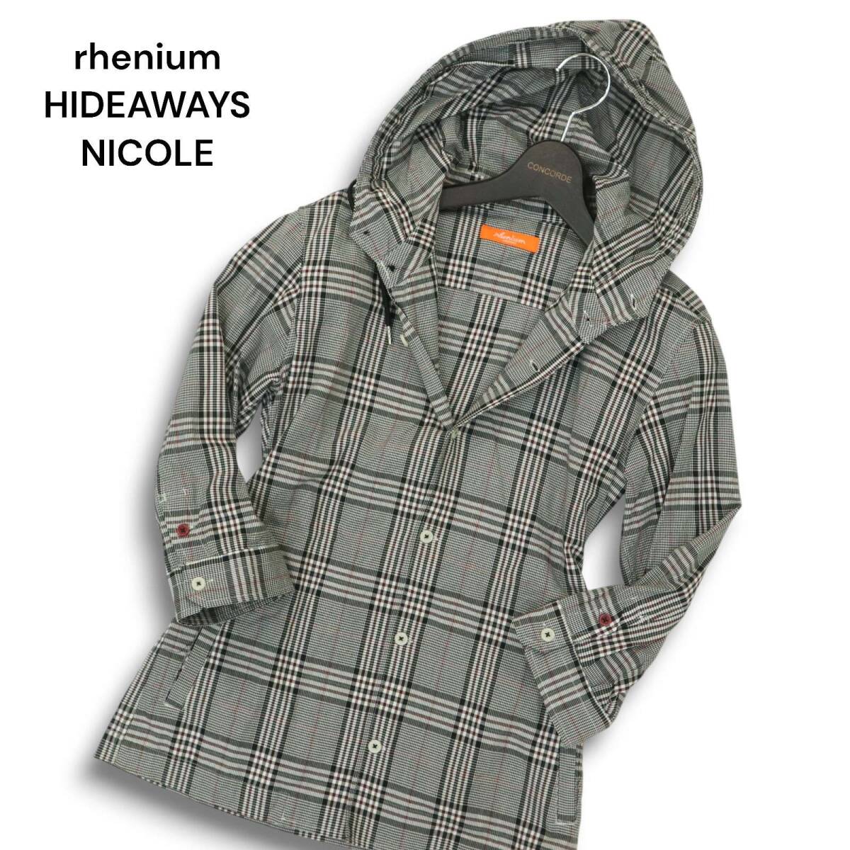 rhenium HIDEAWAYS NICOLE ハイダウェイ ニコル 春夏★ フーディー 7分袖 グレンチェック シャツ パーカー Sz.46 メンズ 灰